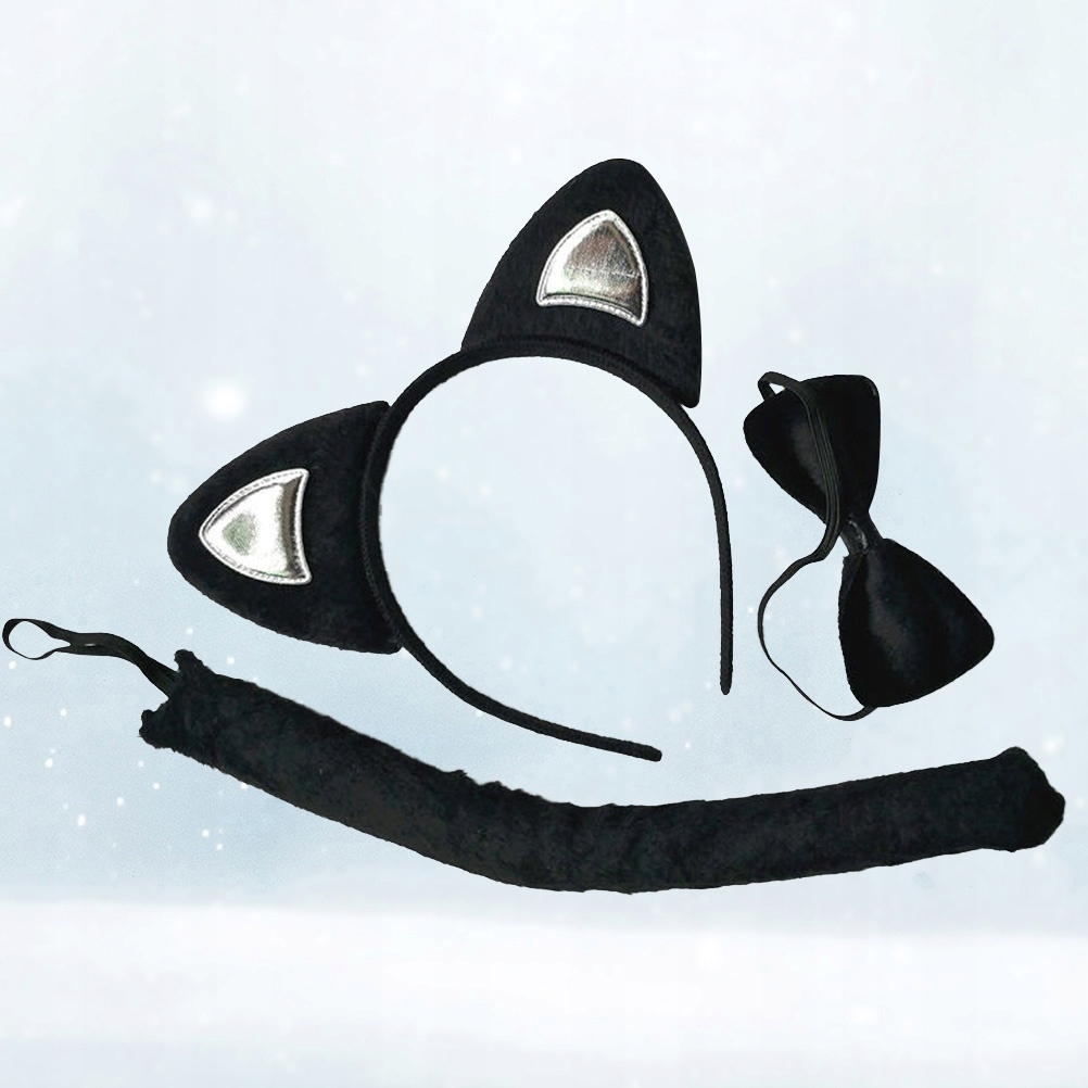 3шт. ДИТЯЧИЙ МУЛЬТФІЛЬМ КОСТЮМ КОТ ВУХА ГОЛОВА І КРАВТОЧКА ХВІСТ РОЛЬОВА ІГРА ТВАРИНА