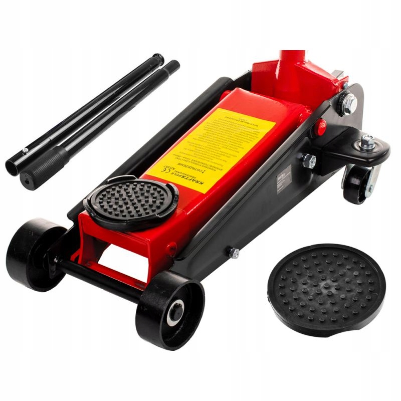 - Практичний автомобільний домкрат, оснащений опорними колесами, що полегшує його пересування.