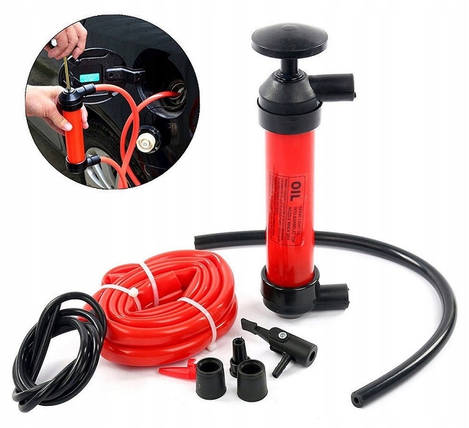 Багатофункціональний насос для палива, води та повітря. Насос виготовлений з матеріалів, які не реагують з паливом. Шланги виготовлені з високоякісної гнучкої гуми. Перекачувати рідину з резервуарів, розташованих вище резервуару, в який ми закачуємо, наприклад, воду або бензин, дуже просто. Просто перемістіть поршень кілька разів, і рідина витече сама.