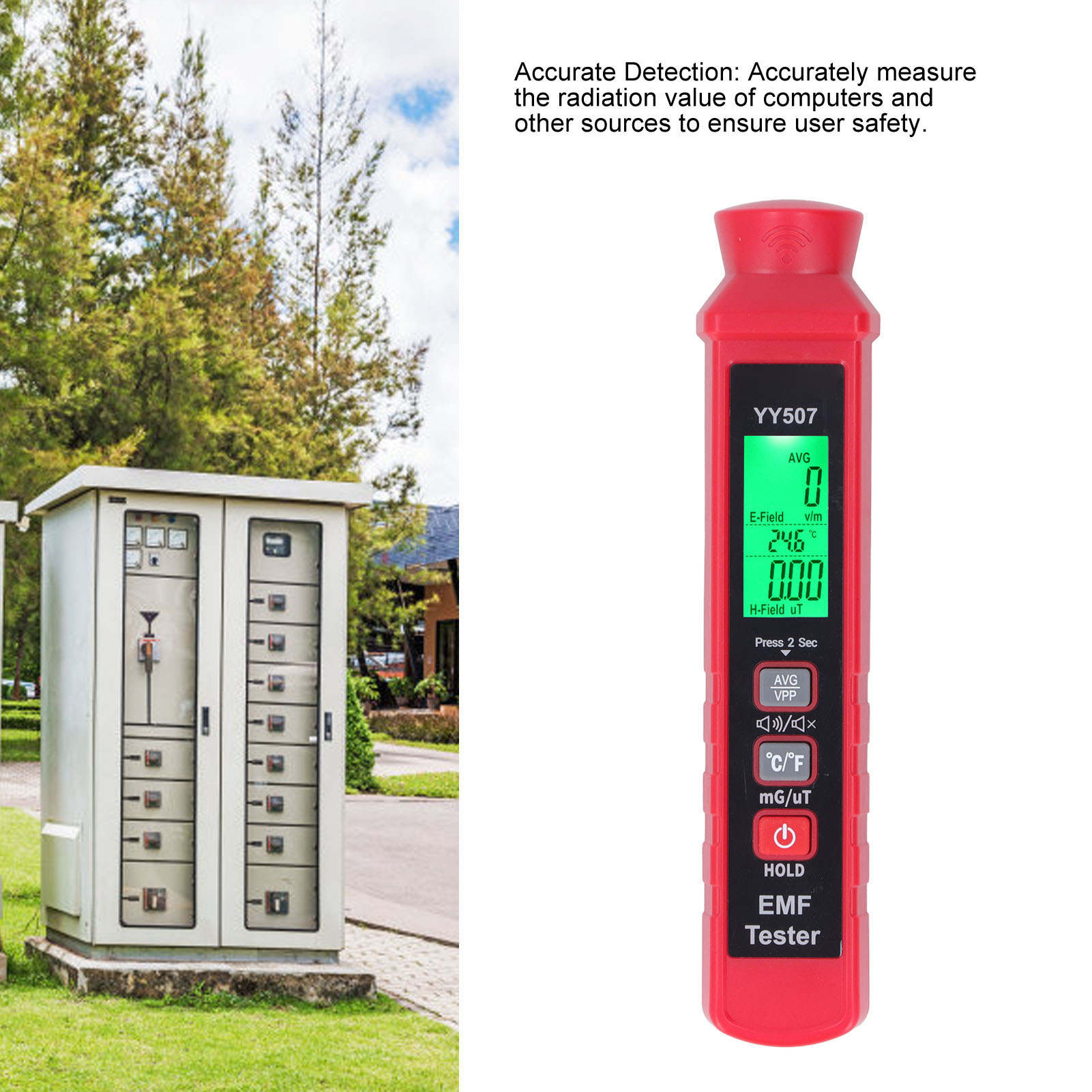 5. Звук і світловий сигнал: забезпечує безпеку та спокій, запускаючи тривогу та відображаючи червону підсвічування РК -дисплея при виявленні надмірного електромагнітного випромінювання.