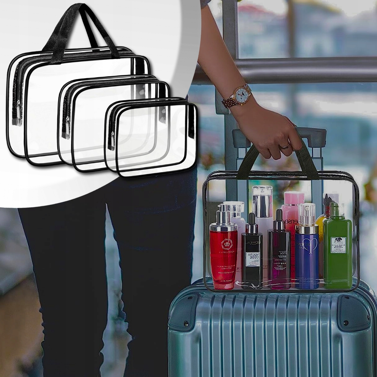 Наш набір косметичних сумок забезпечує виняткову прозорість, що забезпечує швидкий доступ до вмісту, що значно полегшує керування багажем.