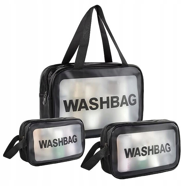 3 Красиві, складні косметички для жінок, доступні в чорному кольорі. У набір входять три різних розміри, що дозволяє ідеально підійти для будь-якого типу подорожей, від коротких подорожей до тривалих експедицій