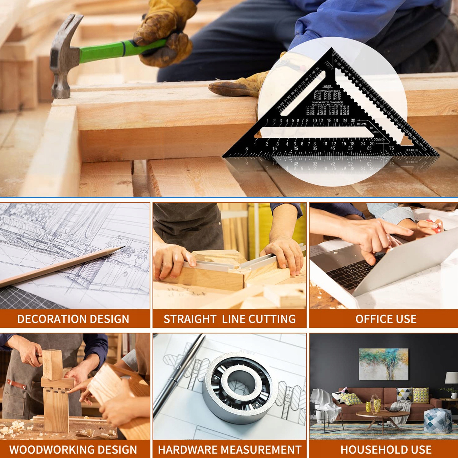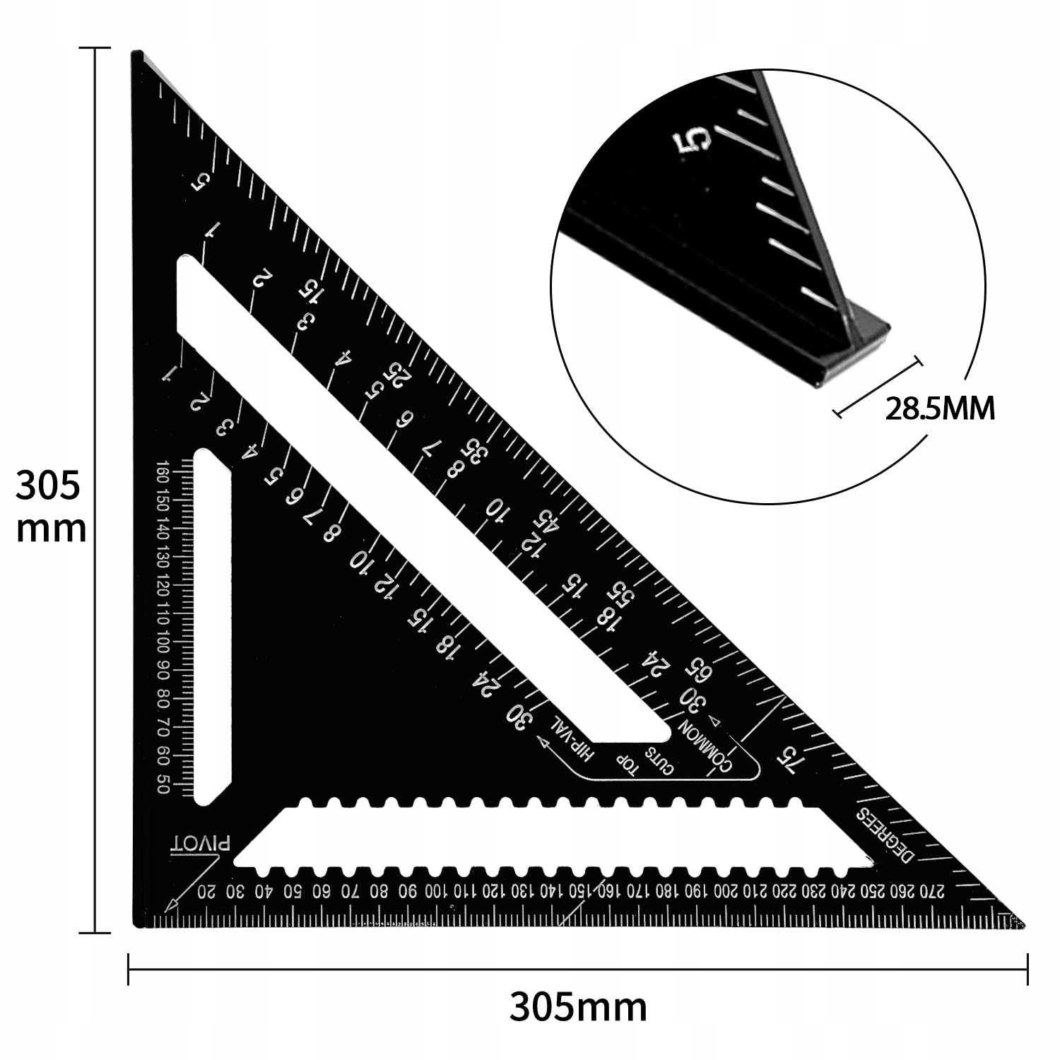 * Трикутна метрична лінійка може бути використана як лічильник ангела, коси, стежка, путівник, кут, еклезія та лінійка, ідеально підходять для всіх проектів будівництва та реконструкції.