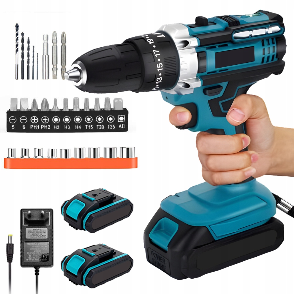 3W1 WIERTARKA ELEKTRYCZNA WKRĘTARKA AKUMULATOROWA 20V + 2 AKUMULATORY