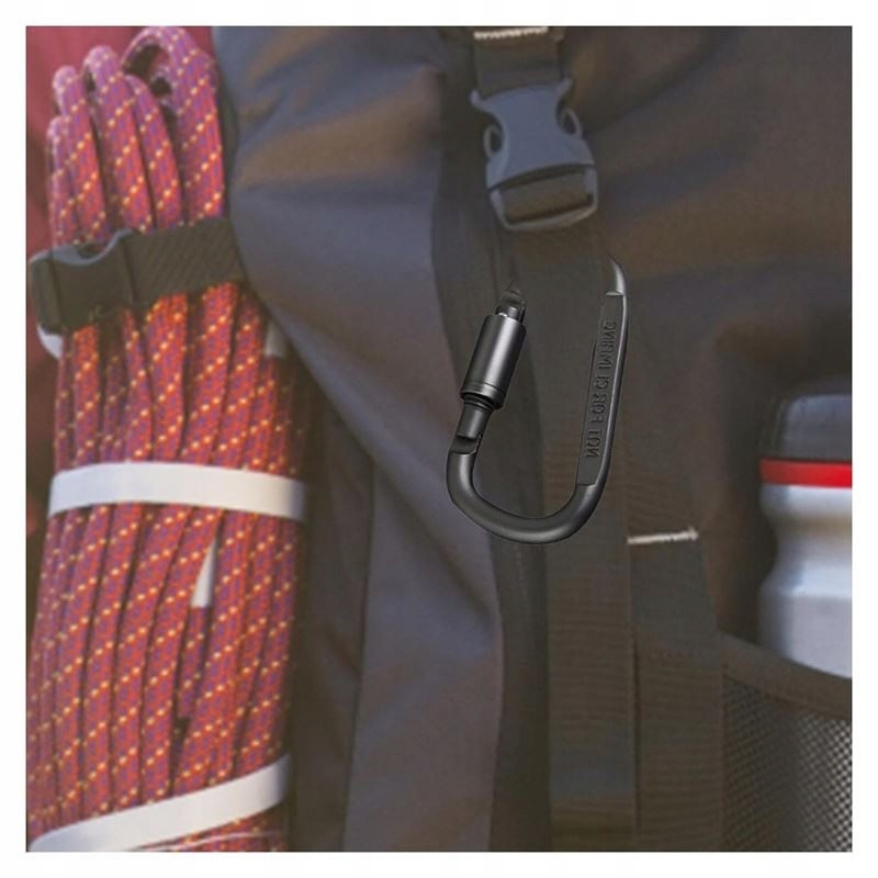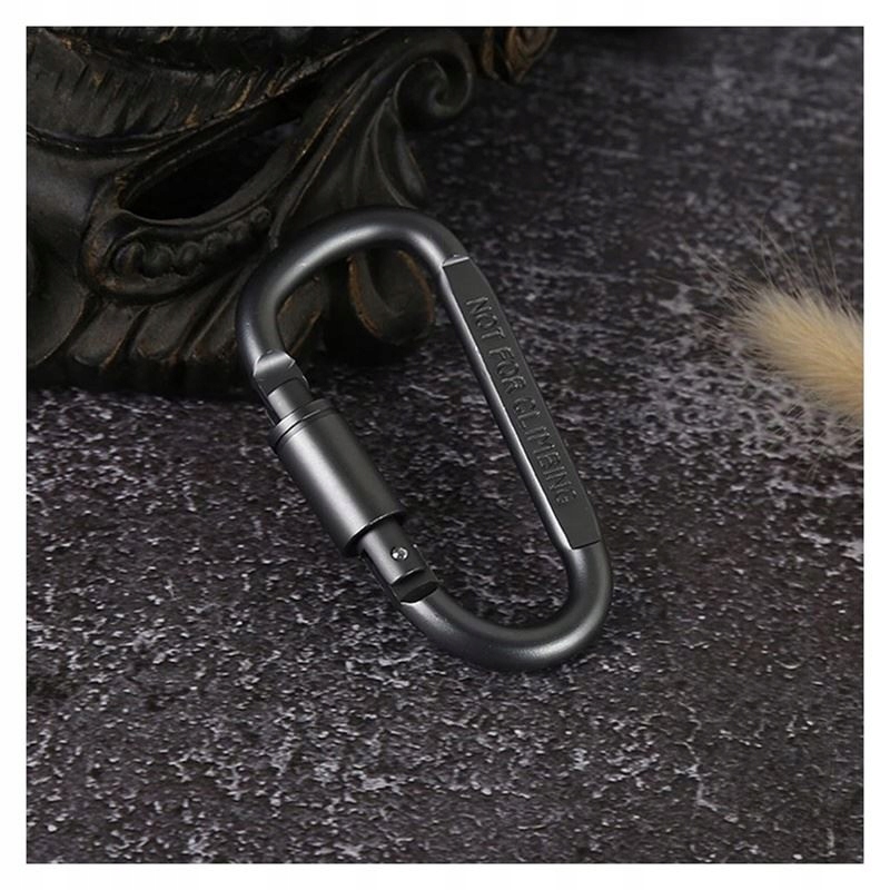3x Алюмінієвий туристичний карабін з замком, 8 см, чорна ручка для виживання