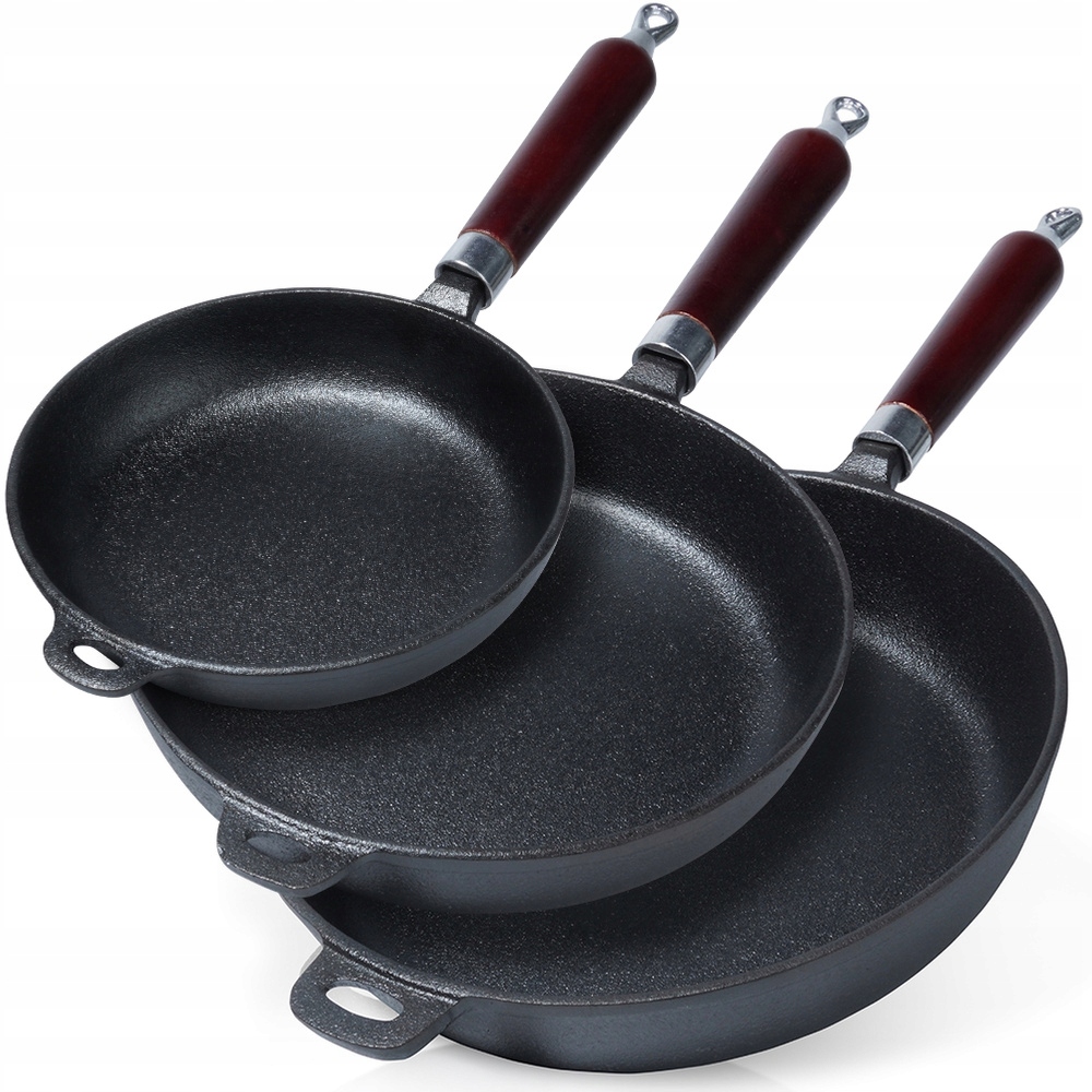 ✅ надійний - набір з трьох багатофункціональних чавунних каструль у трьох розмірах. У наборі 1x невелика каструля з діаметром 20 см (зовнішні розміри: довжина 43 см, ширина 21 см, висота каструлі 4,5 см, висота з ручками 8 см), 1x середня каструля з діаметром 24 см (зовнішні розміри: довжина 47 см, ширина 25 см, висота 5 см, висота з висотою 8 см), 1x феномен -фенонон, що має дію 28 см. Розміри: Довжина: Довжина: Довжина 51,5 см, ширина 29 см, висота сковороди 6 см, висота з ручкою 8,5 см). Дозволить вам приготувати смачне м'ясо, овочі, картоплю.