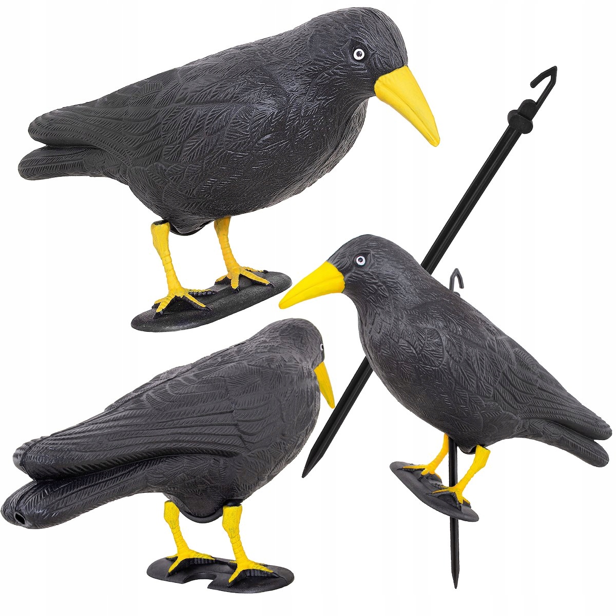 3x DUŻY KRUK ODSTRASZACZ PTAKÓW GOŁĘBI SZPAKÓW PTAK CZARNY OGRODOWY STOJĄCY