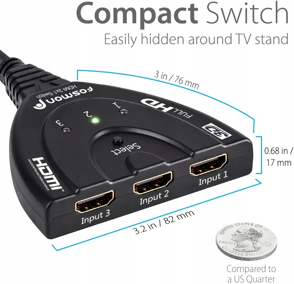 - Вбудований кабель HDMI - 50 см HDMI -Pigtail, 3 входи HDMI та 1 вихід HDMI.