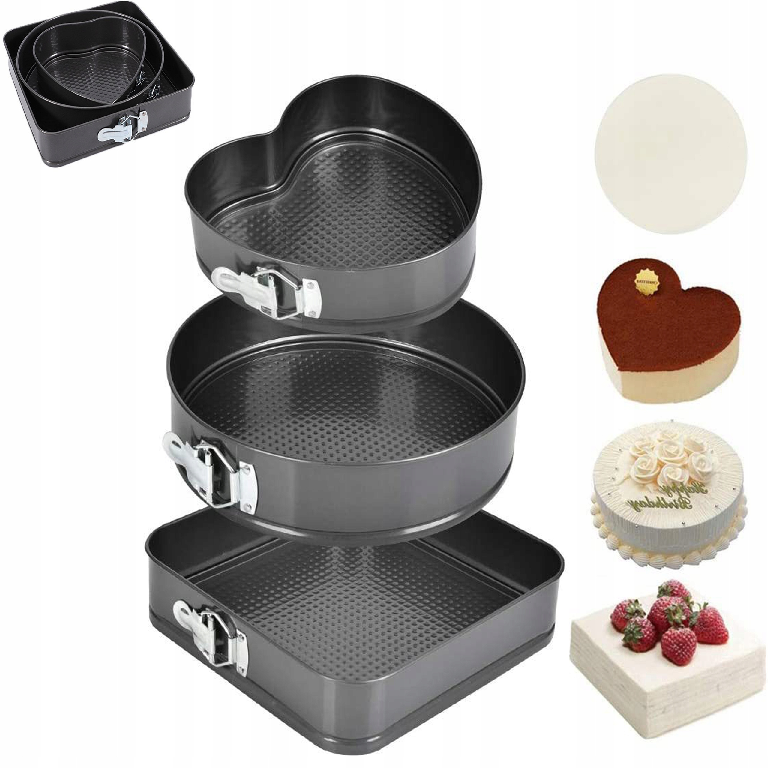 3x НАБІР ДЛЯ ВИПІЧЕННЯ КОШКІВ, ТОРТІВ, СЕРЦЕ КВАДРАТНЕ КРУГЛЕ