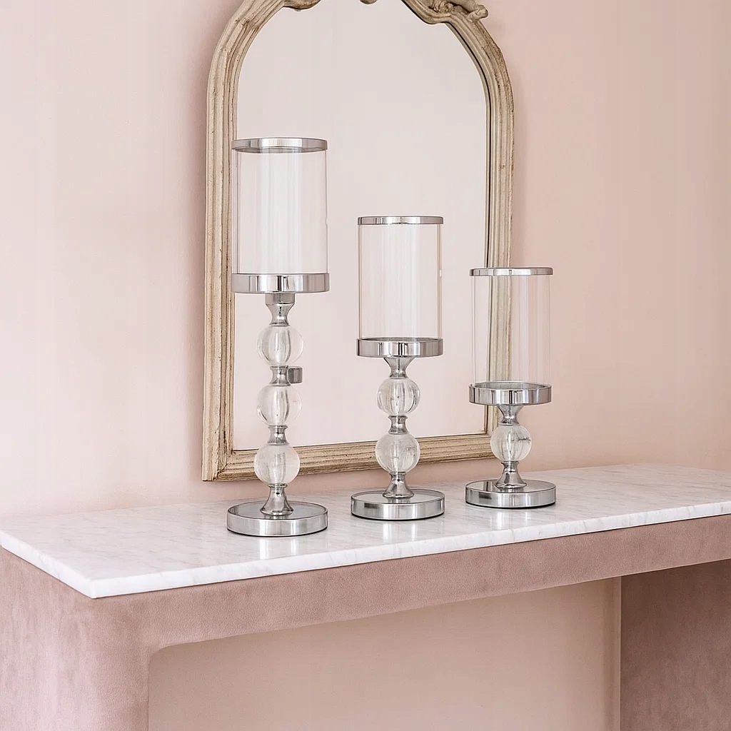 ✅ Стильний набір із 3 срібних свічників – елегантна прикраса в гламурному стилі