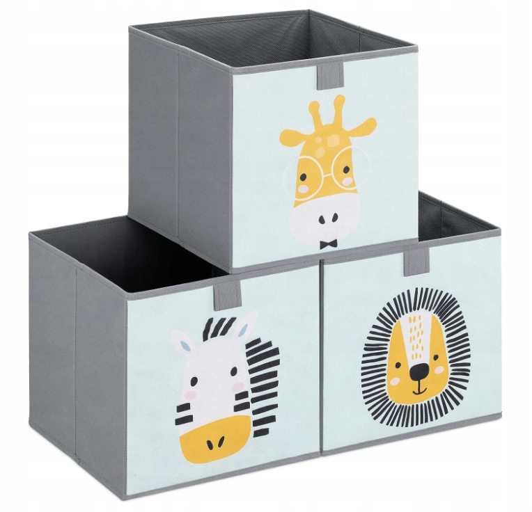 3X PUDEŁKA NA ZABAWKI DZIECIĘCE SKRZYNKI 28x28 CM SKŁADANE ORGANIZERY