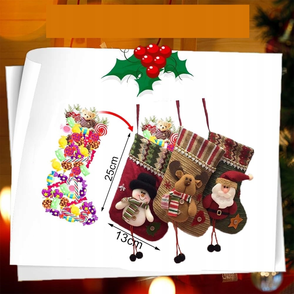 3X РІЗДВЯНІ ШКАПЕТКИ ДЛЯ ПОДАРУНКІВ ОЛЕНЬ СНІГОВИК САНТА КЛАУС РІЗДВО