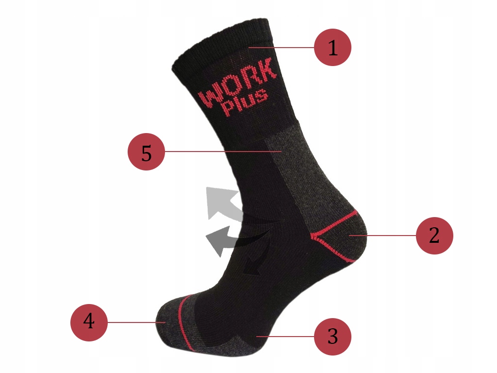 ШкарпеткиWORK PLUS були створені на основі відгуків і пропозицій клієнтів щодо шкарпеток WORK. Відмінності між WORK PLUS і WORK: