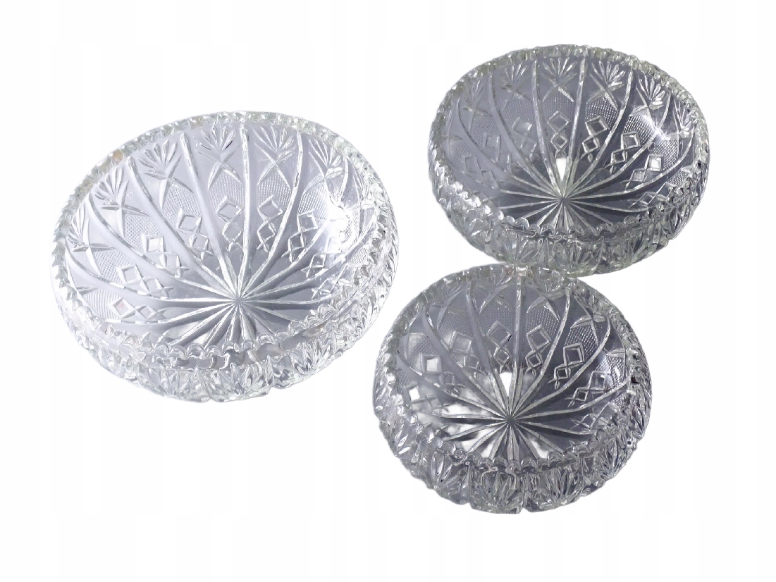 Набір із трьох красивих старовинних салатників із товстого пресованого скла.