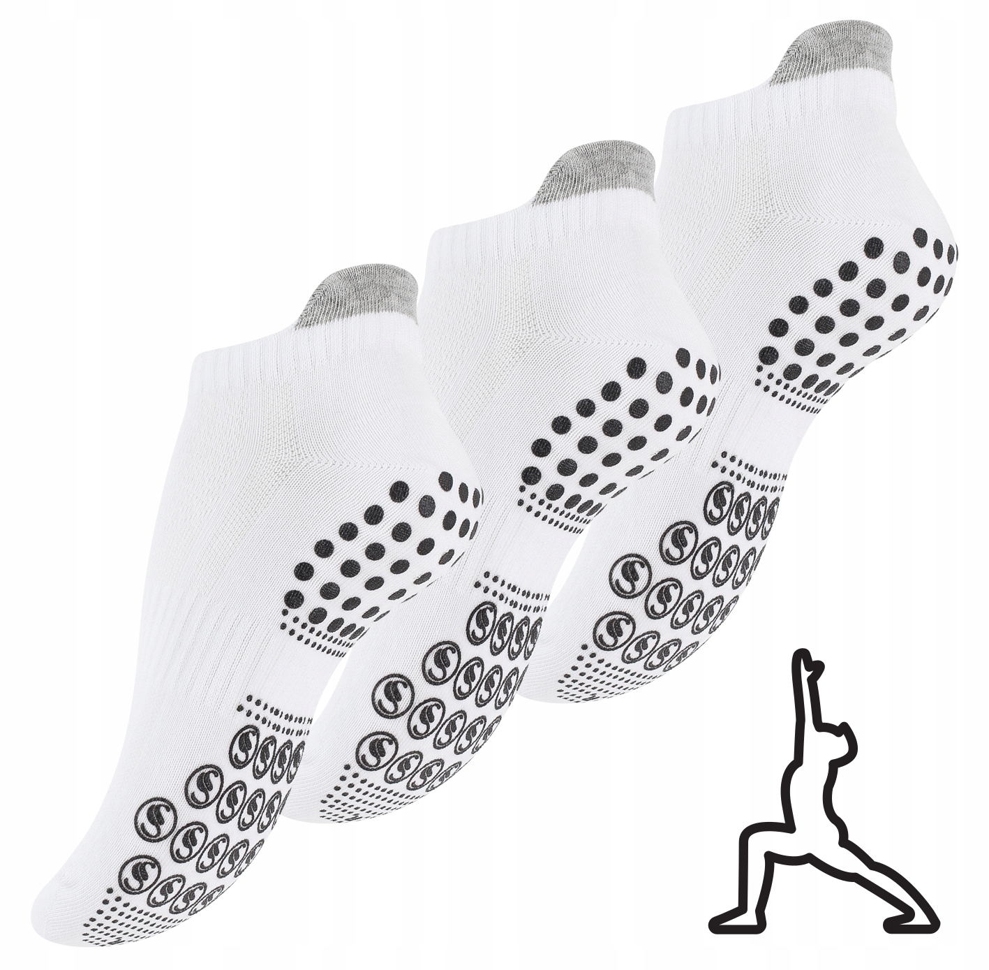 3X Шкарпетки для йоги проти ковзання фітнес танці ABS білі 3-PACK