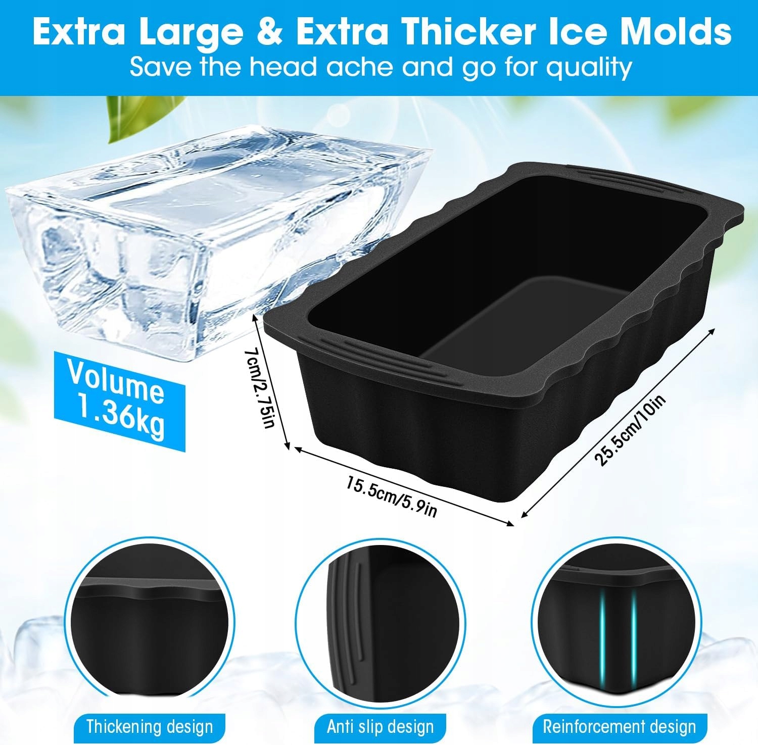 3x силіконова форма для великих кубиків льоду для крижаної ванни xxl