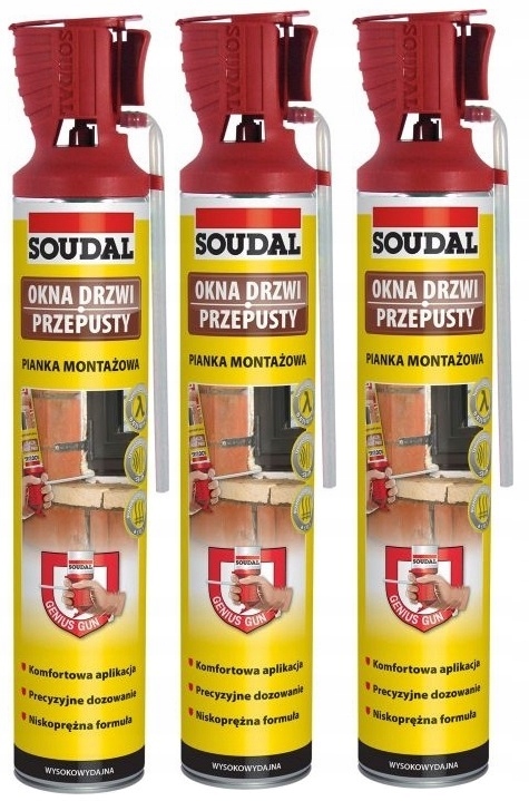 3x SOUDAL GENIUS GUN PIANKA PIANA Z APLIKATOREM 770ML
