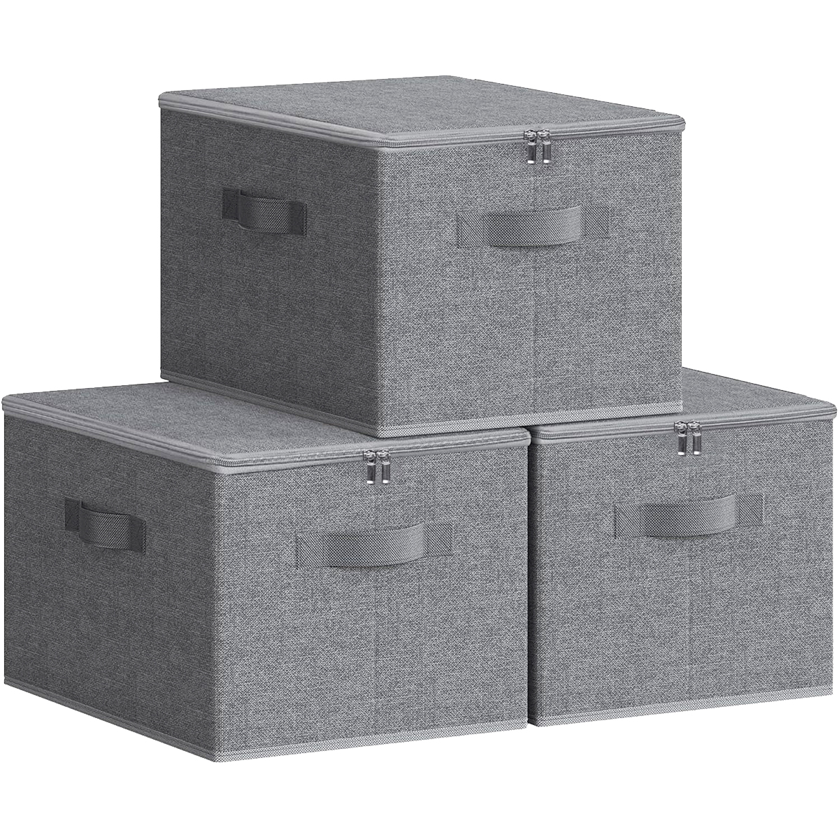 Коробки для зберігання з кришками, набір з 3 шт., складні коробки з тканини Оксфорд з 3 ручками, місце для зберігання одягу, 40 x 30 x 21 см (сірий сірий)