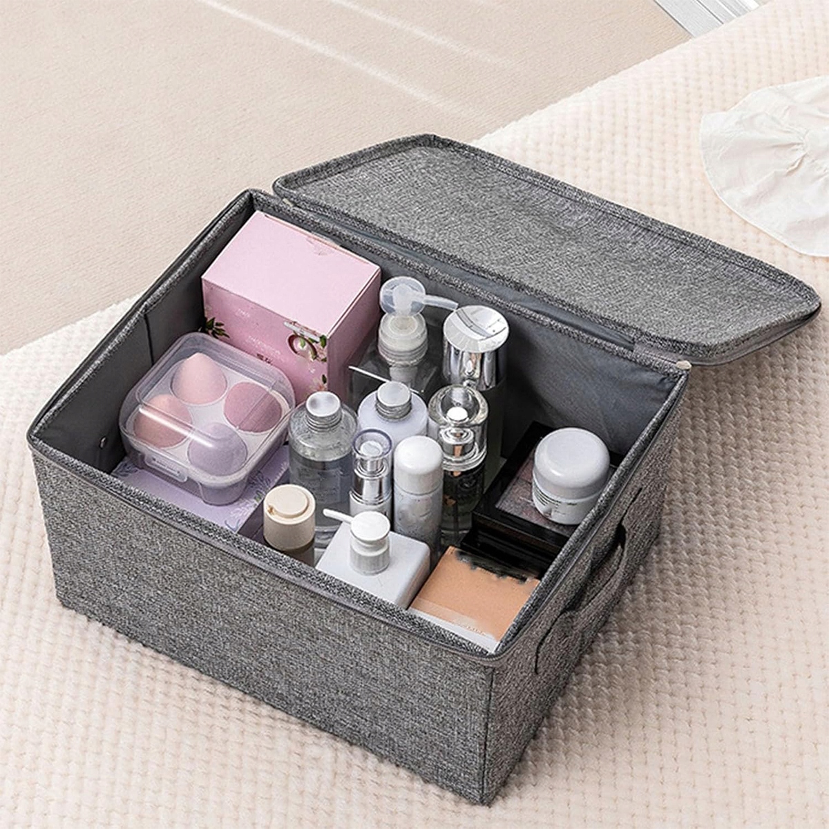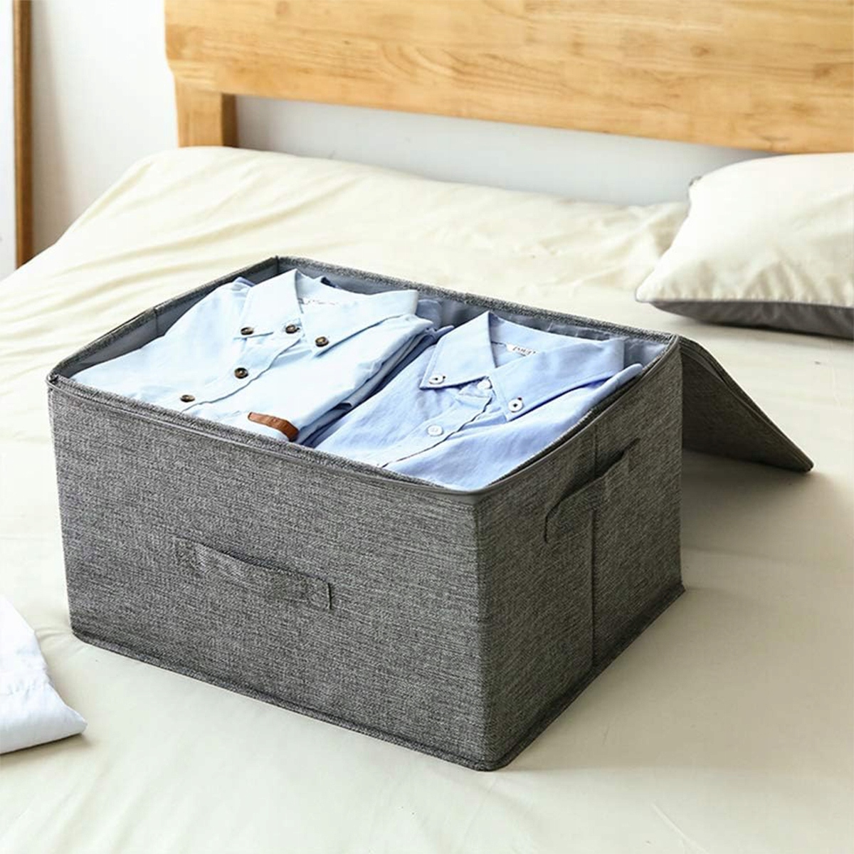 Кришки цих тканинних коробок мають блискавку, що проходить уздовж трьох сторін, щоб захистити ваш одяг від пилу; ви можете вільно розмістити коробки на полиці, на шафі або під ліжком.