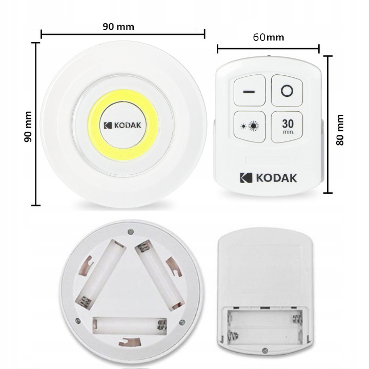 3 практичні світлодіодні лампи діаметром 9 см, що живляться від батарейок, які випромінюють яскраве, холодне світло 6000K.