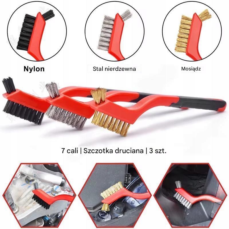 3x SZCZOTKI DRUCIANE STALOWE RĘCZNE TECHNICZNE DO RDZY METALU FARBY ZESTAW