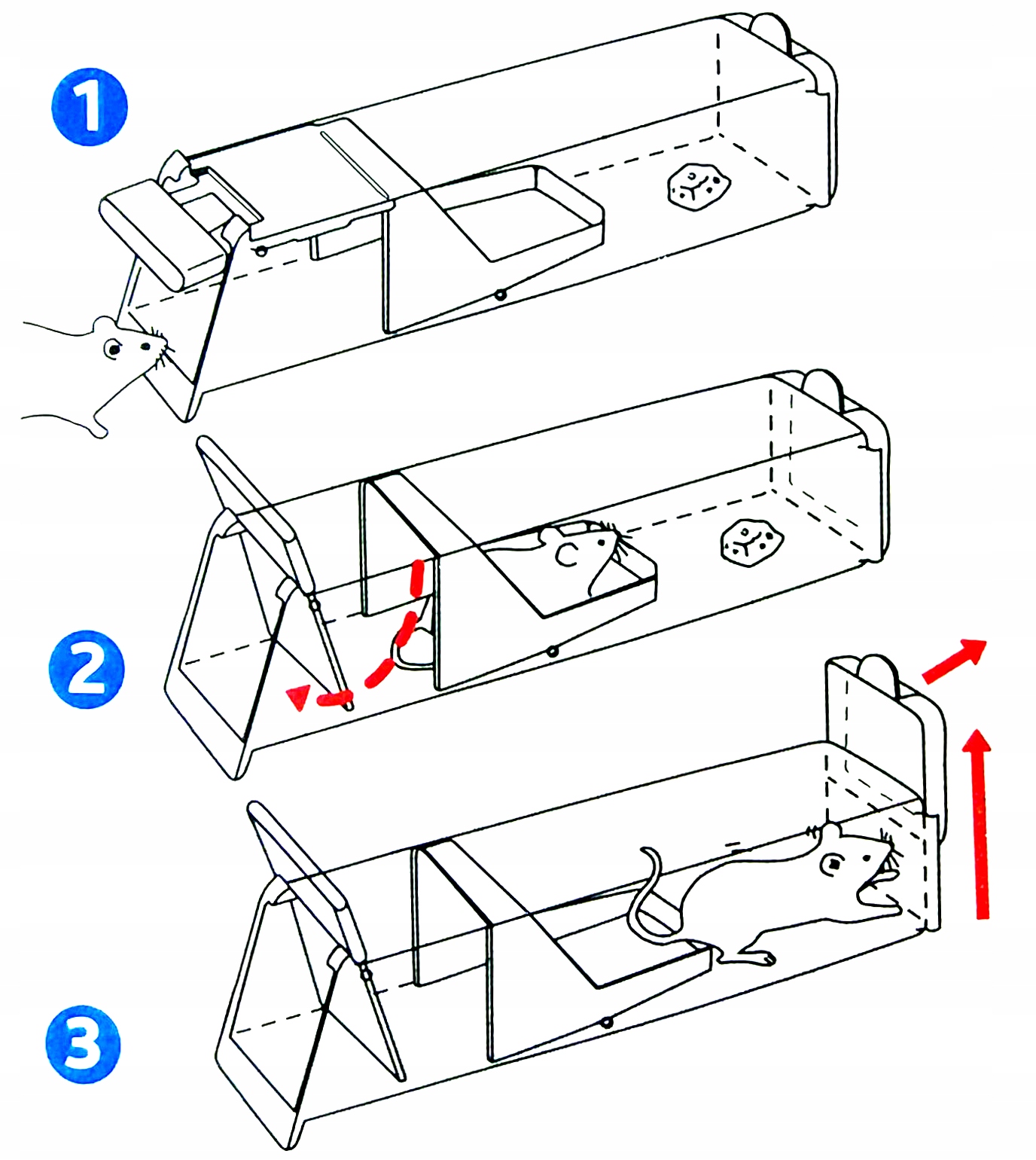 Пастка має спеціальний механізм, який пропускає мишу всередину та не випускає її.