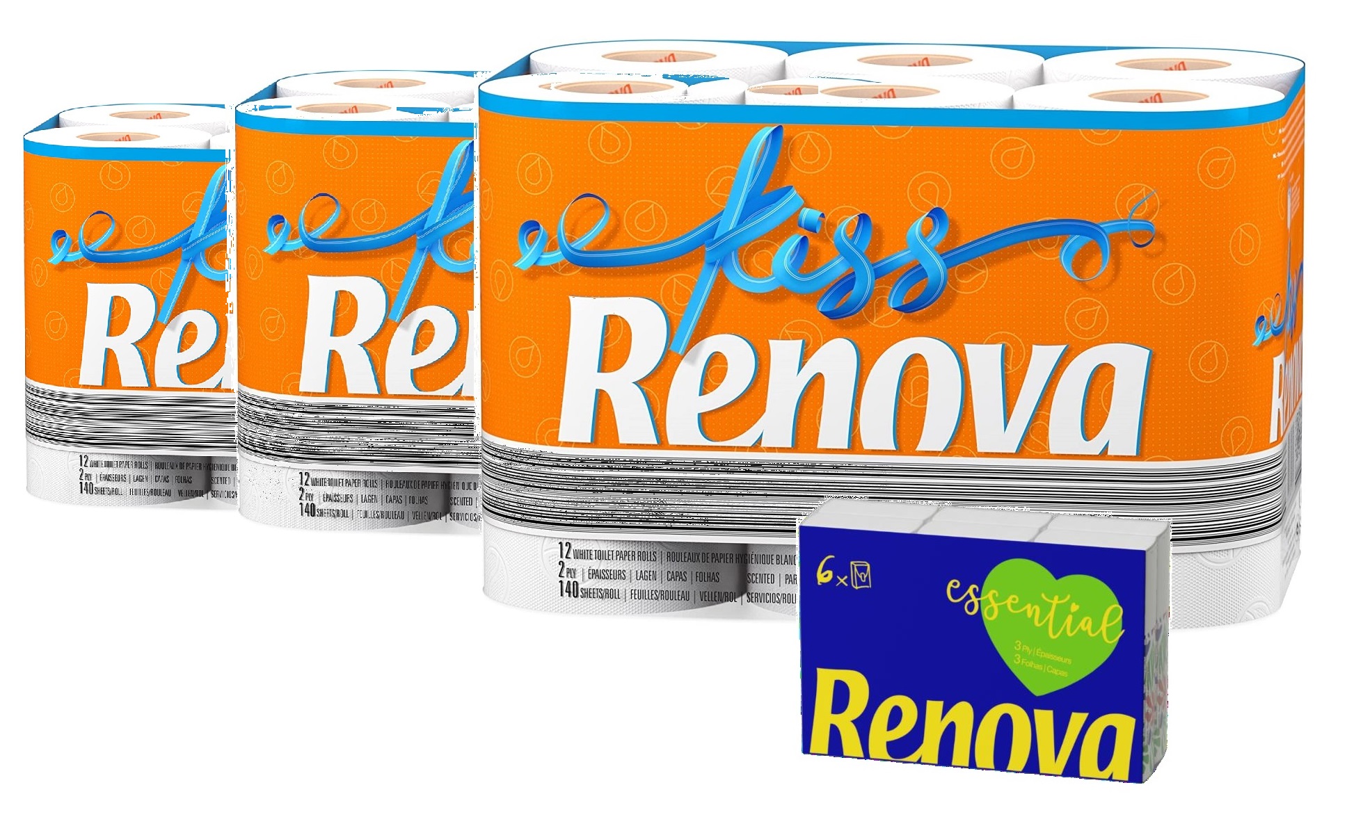 3x Renova Kiss 12R туалетний папір + безкоштовно