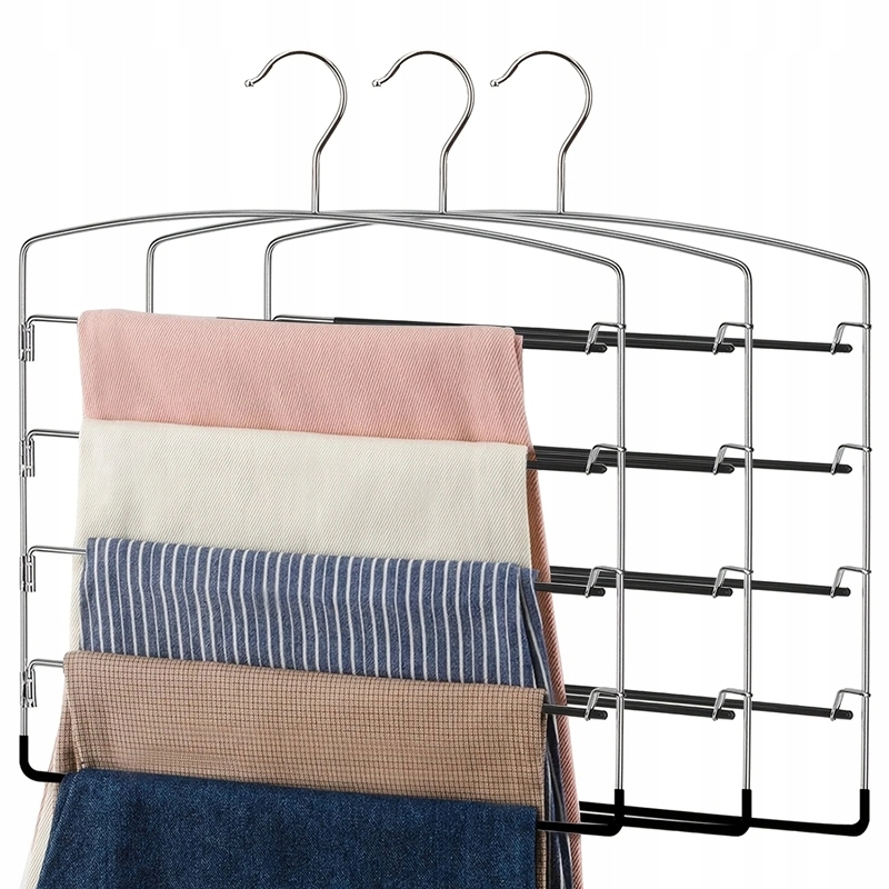 3X ВІШАЛКА ДЛЯ ШТАН БАГАТОРІВНЕВИЙ НЕ КЛИЗКИЙ ОРГАНІЗАТОР ШАФИ