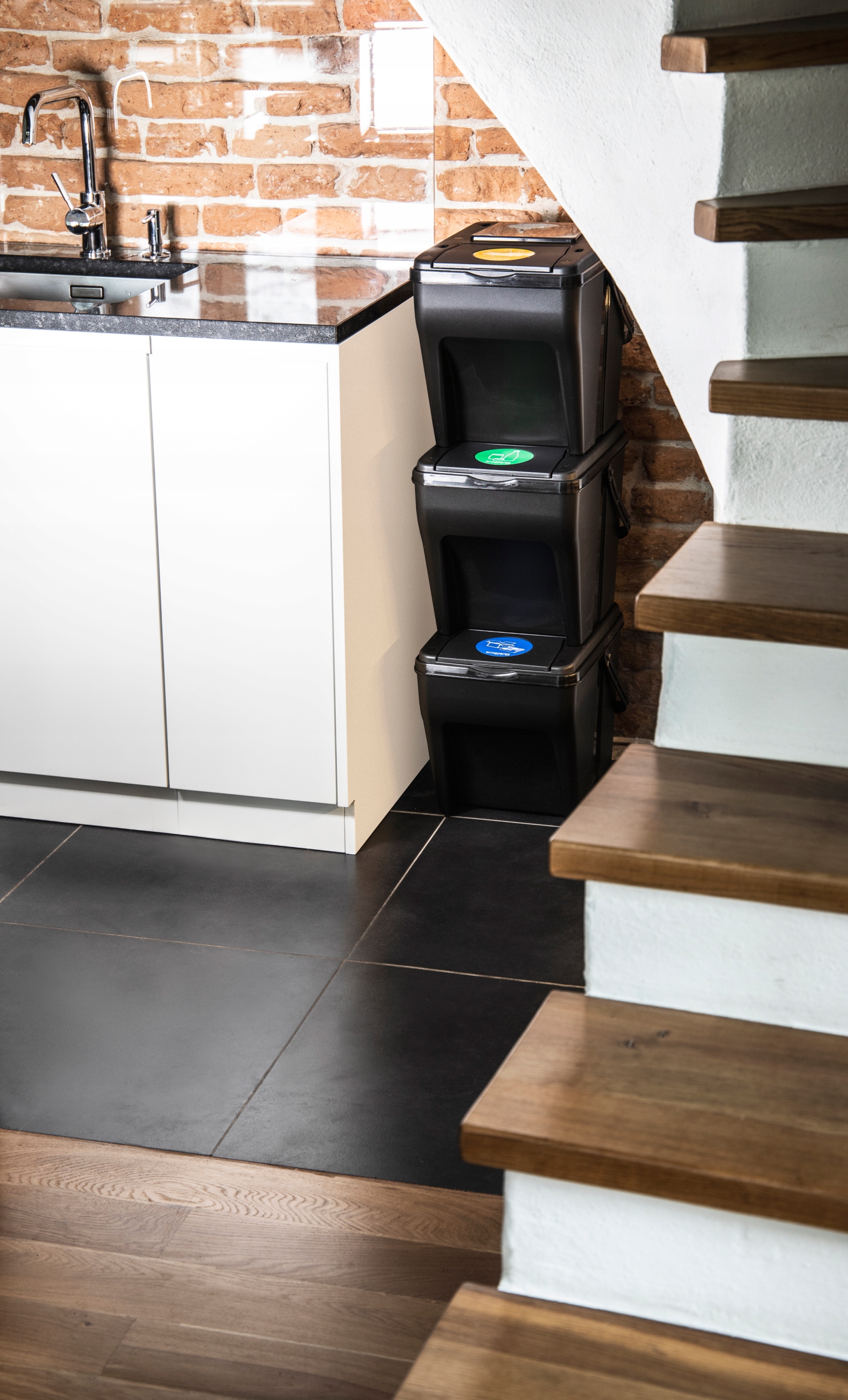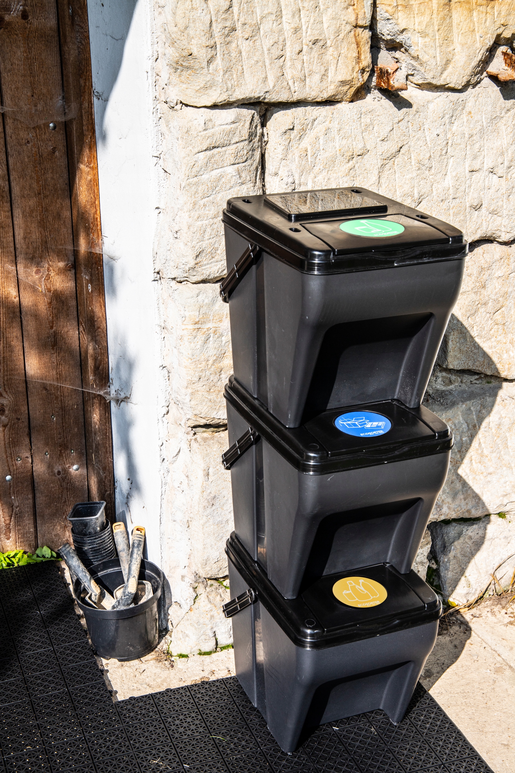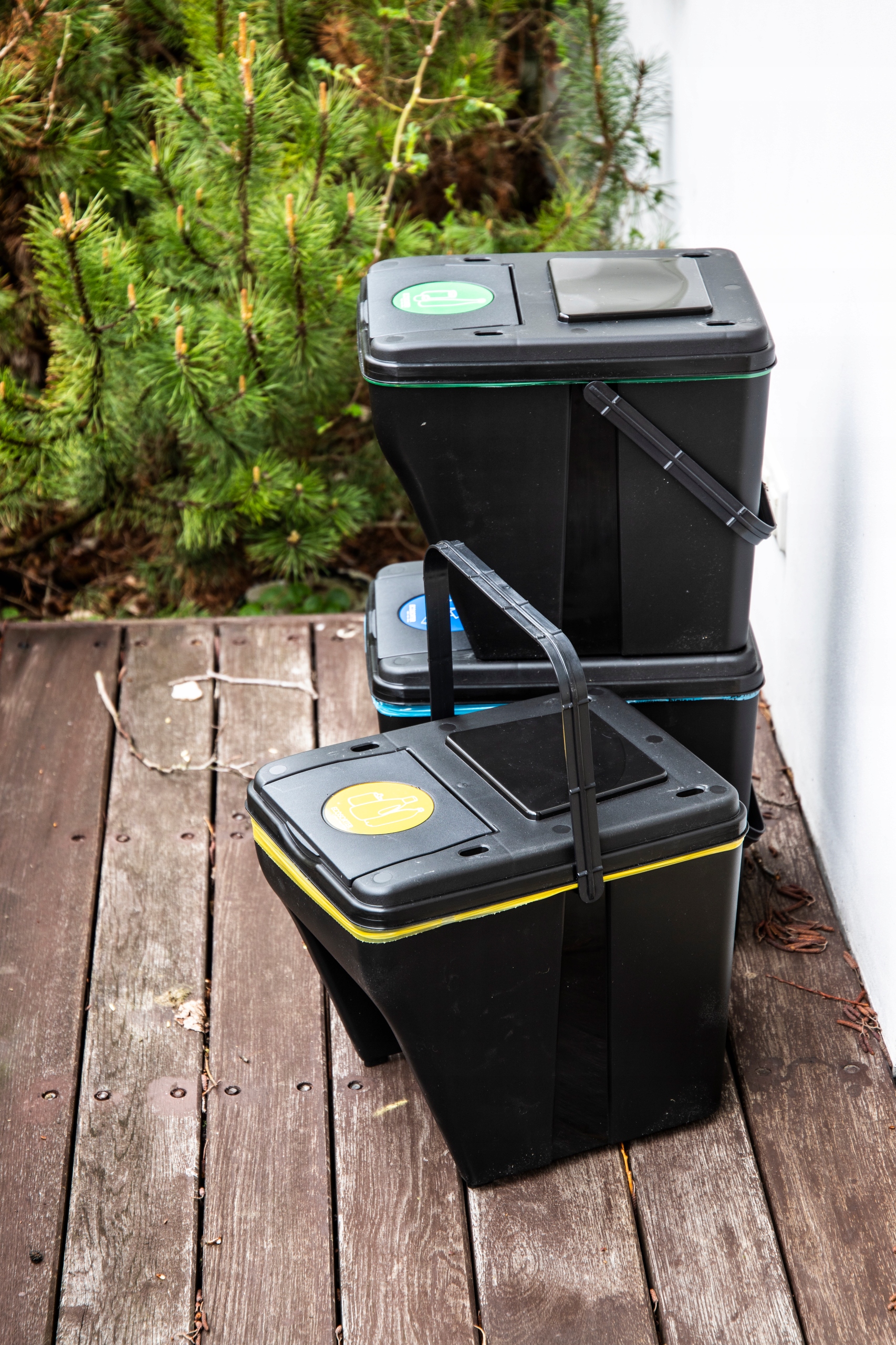 Набір із трьох інноваційних контейнерів для сортування сміття є ідеальним рішенням для людей, які хочуть брати активну участь у захисті навколишнього середовища як вдома, так і в офісі та на відкритому повітрі будівель. Кожен 25-літровий контейнер виготовлено з високоякісних перероблених матеріалів, що робить його чудовим вибором для тих, хто прагне вести екологічний спосіб життя.