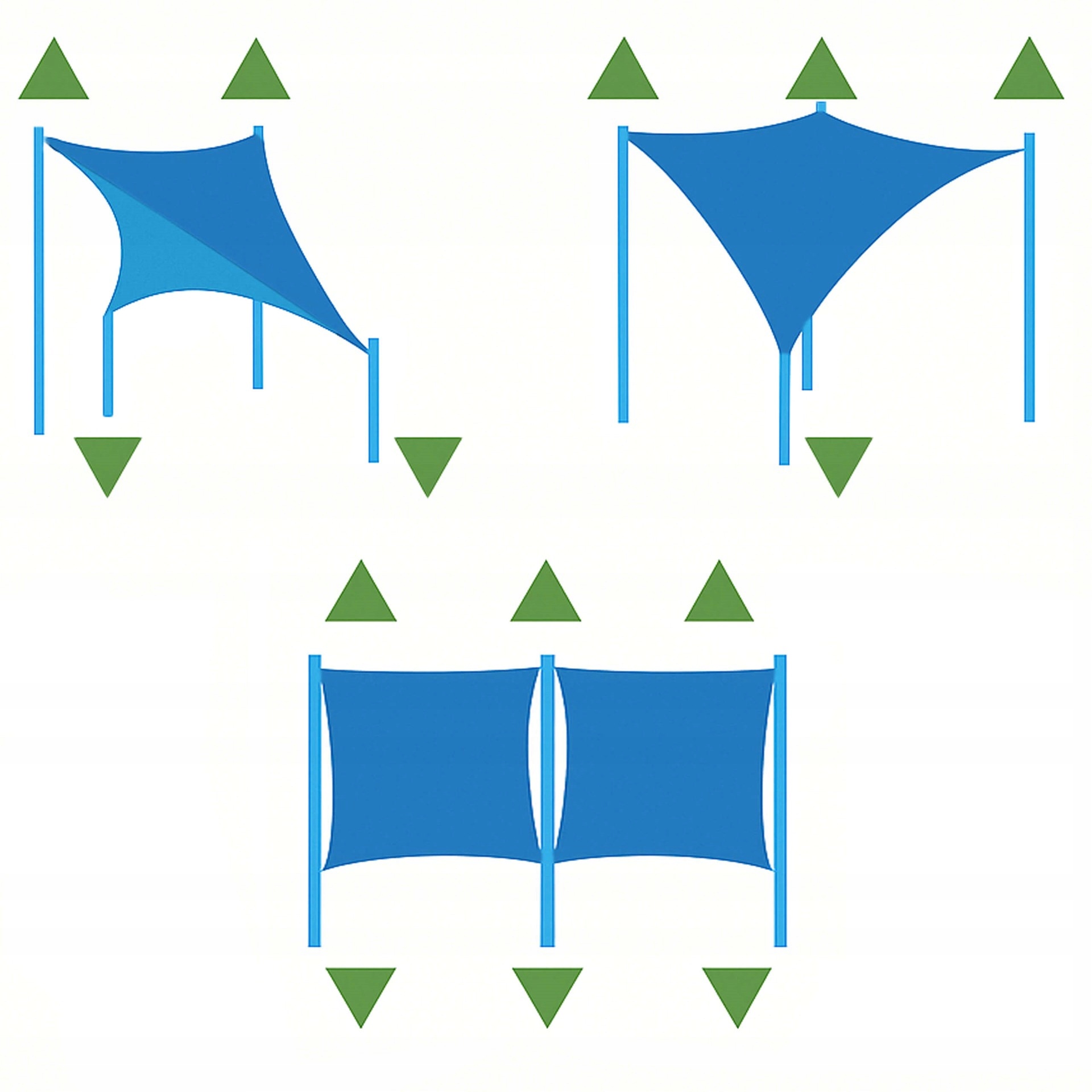 вітрило обладнано кілець з нержавіючої сталі на кожному куточку матеріалу, завдяки якому його встановлення надзвичайно просто . Просто прикріпіть його з рядками, які є у наборі.
