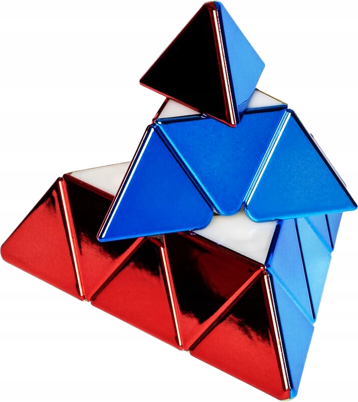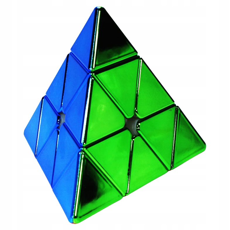 Звичайний куб Pyraminx з незвичайним варіантом імітації дзеркального покриття. Куб повністю пластиковий, металевий пластик, що дає дивовижний ефект відображення, також дряпається, що потрібно враховувати при покупці.