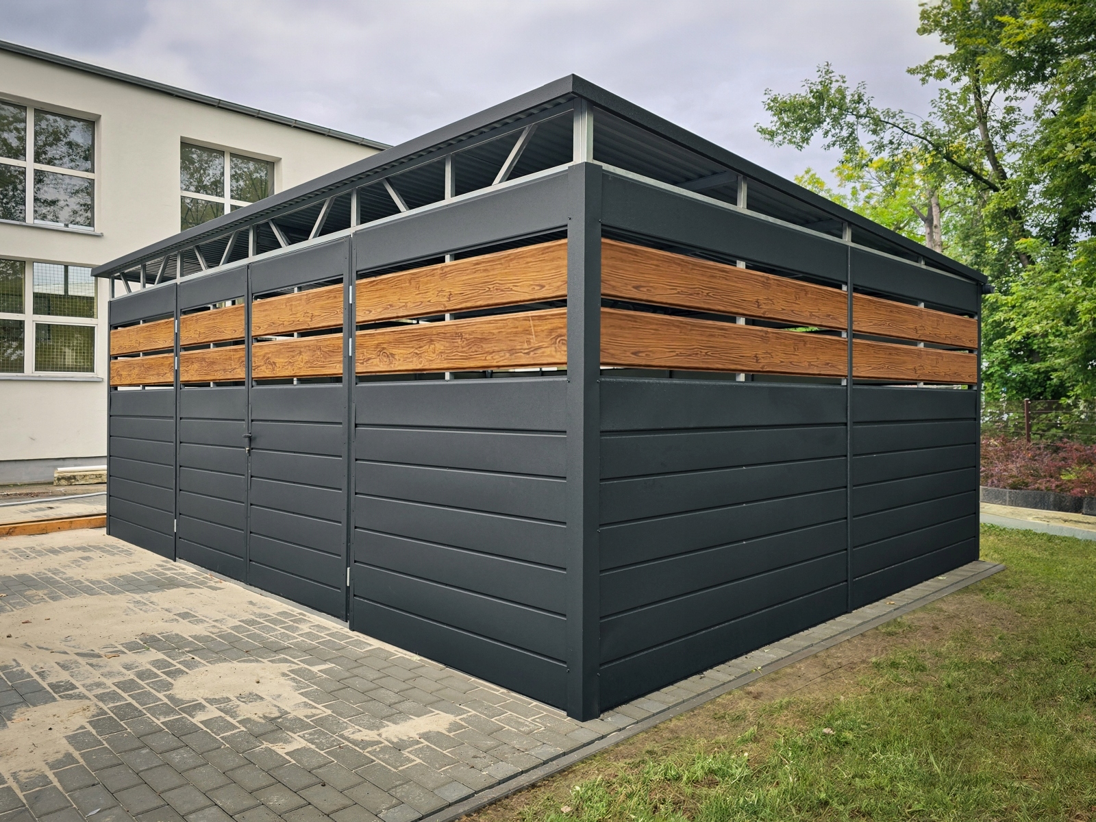 Модульна конструкція дозволяє змінювати окремі елементи - колір стін стін, даху, розташування дверей або реалізація їх у двосторонній формі та легкої можливості заміни/ремонту. Оцинковані з широкими перехрестями - що перетворюється на багаторічну міцність і стійкість структури до іржі.