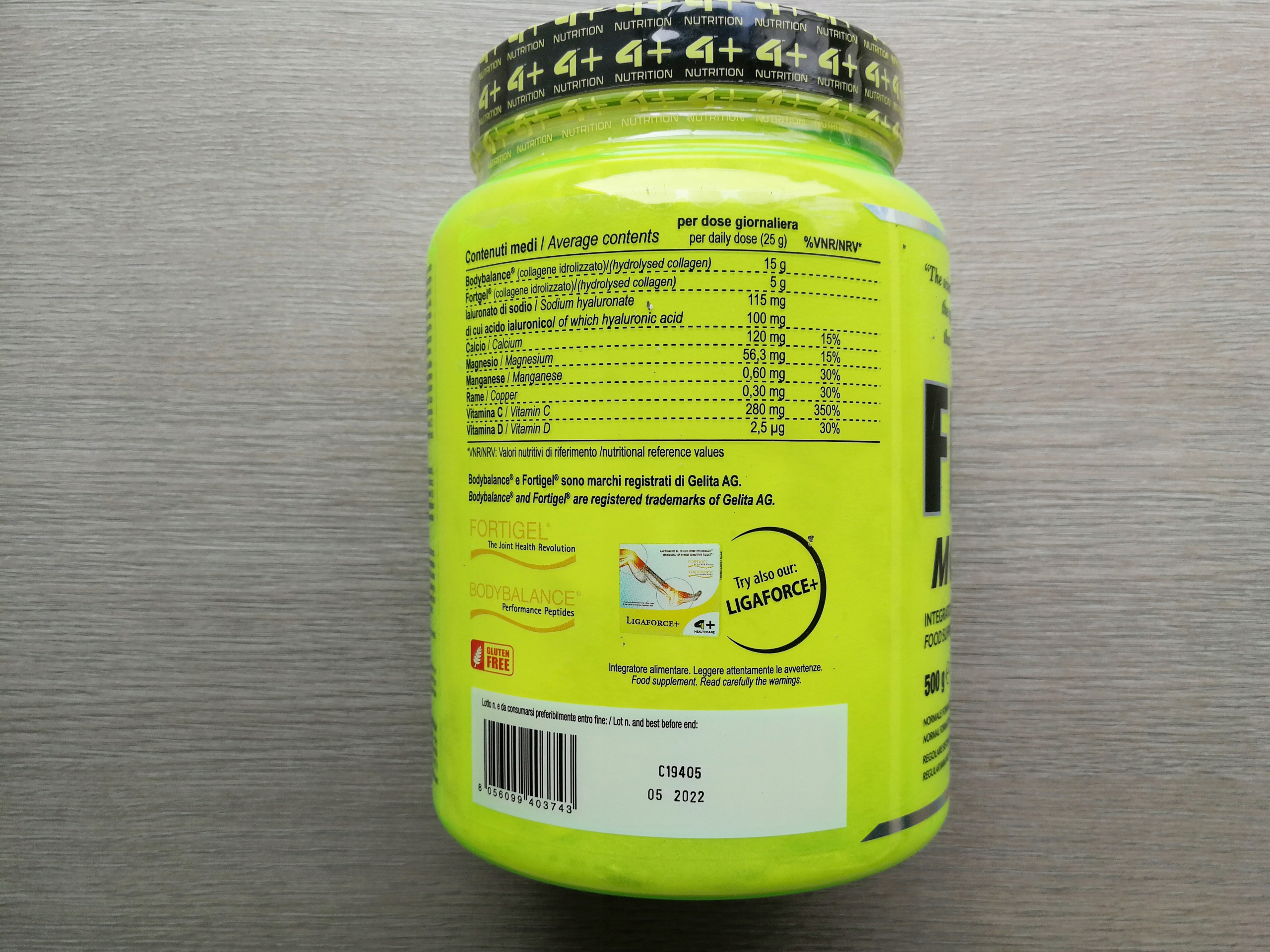 Добавка FLEX Mobility+ - це найякісніший регенератор суглобів від відомого італійського бренду 4+ NUTRITION. Цьому бренду довіряють найкращі італійські бігуни, велосипедисти, гімалайські альпіністи та футболісти Серії А. Добавка заснована на високобіологічно активних пептидах двох форм гідролізованого колагену - запатентованих BODYBALANCE® та FORTIGEL ® формули. Крім того, продукт містить цінну гіалуронову кислоту та важливі мікроелементи, такі як вітаміни C і D, магній, кальцій, марганець і мідь. FLEX Mobility+ позитивно впливає на стан зв'язок, зміцнює суглобовий хрящ за рахунок збільшення вироблення колагену та зволоження сполучної тканини. Завдяки такій дії суглоб працює краще. Упаковка містить 20 окремих порцій, і для досягнення найкращих результатів найкраще доповнити принаймні 3 місяці.
