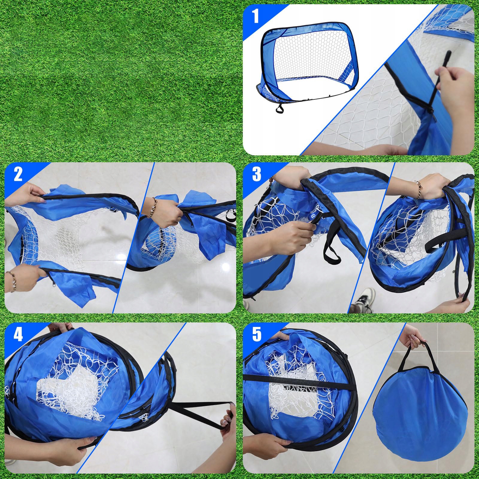 Футбольна мережа може бути складена до сумки для зберігання, коли вона не використовується.