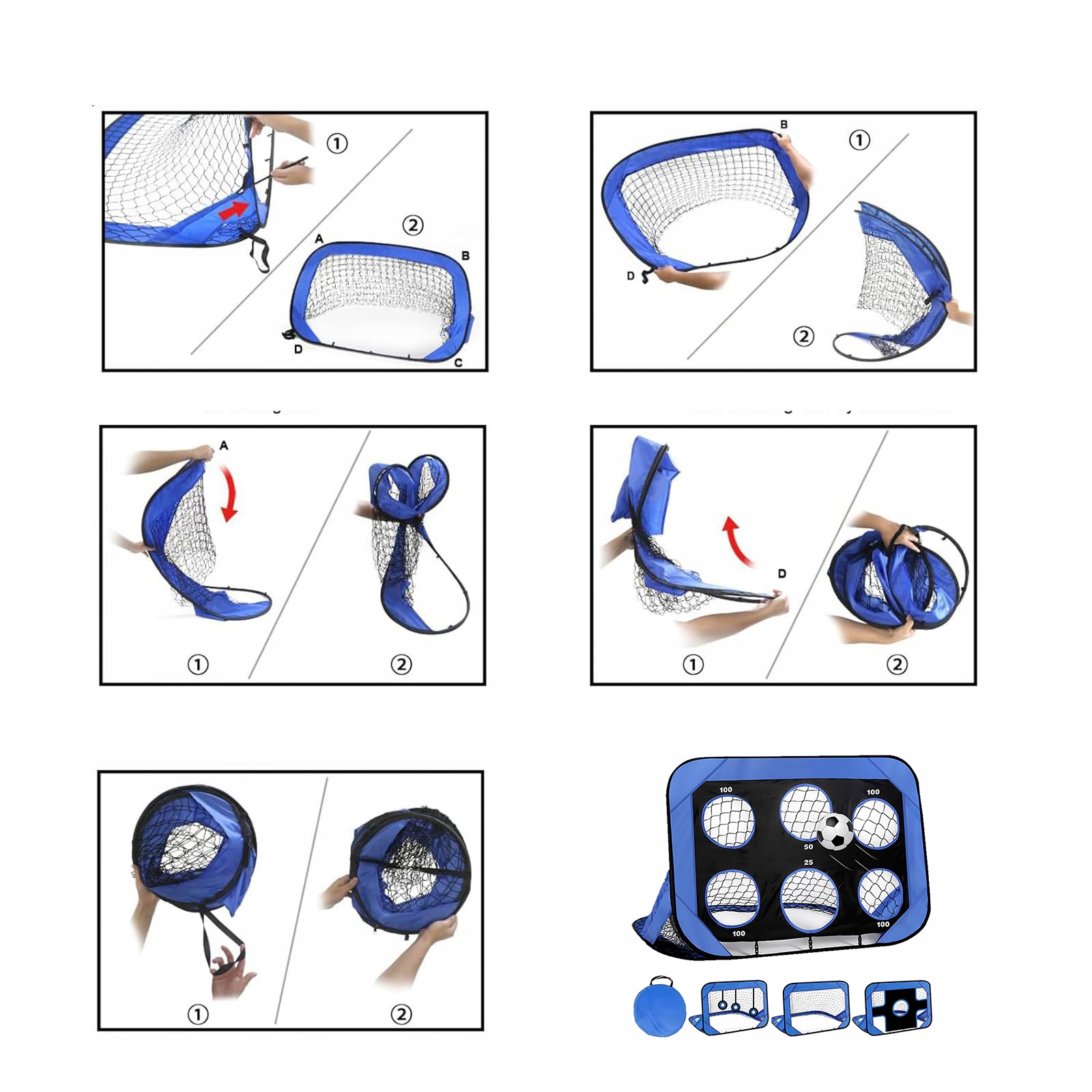 Футбольна мета для дітей з 4 режимами, що підходить для гольфу з 3-х осіб, лука, цвіркунів та інших рекреаційних заходів.