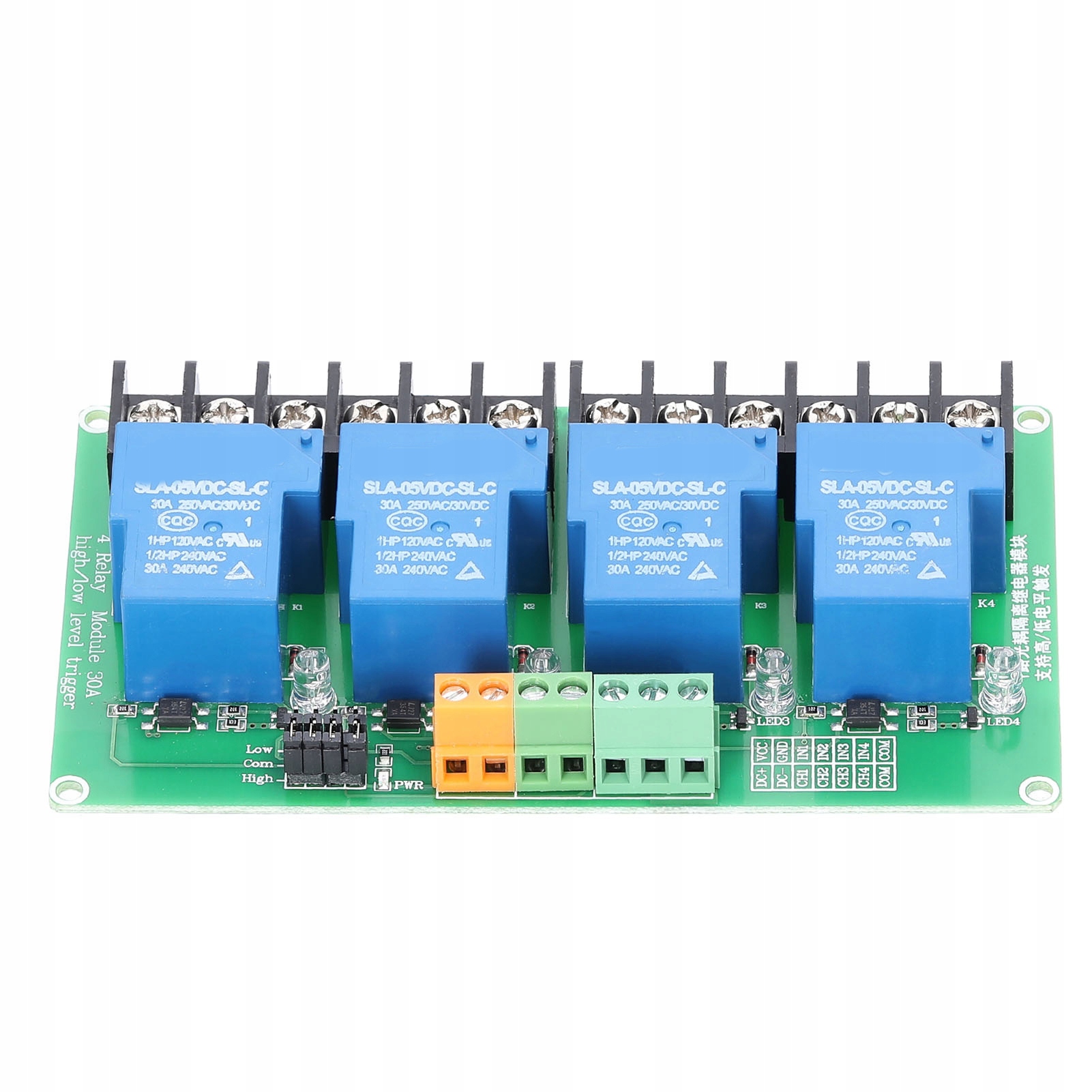 - Цей 4-канальний реле реле приймає реле преміум-класу 30A, максимальне завантаження відкритого інтерфейсу: AC250V/30A, DC30V/30A. Використання оптокоу ґрунтової ізоляції, сильної здатності до водіння та стабільної продуктивності; Струм злив - 5 мА. Робочі напруги Moduu - це 5 В, 12 В і 24 В для, ви можете вибрати відповідно до своїх потреб. Модуль можна запустити, встановивши високий або низький рівень через перемичку. Широкі програми, що відповідають контролю обладнання для автоматизації PLC, контролю промислової системи, Інтернет -елементів управління домашньою розвідкою, експериментів з розробки електронних любителів, різних модифікацій схем тощо. Ефір з високою потужністю для управління навантаженням до 30А.