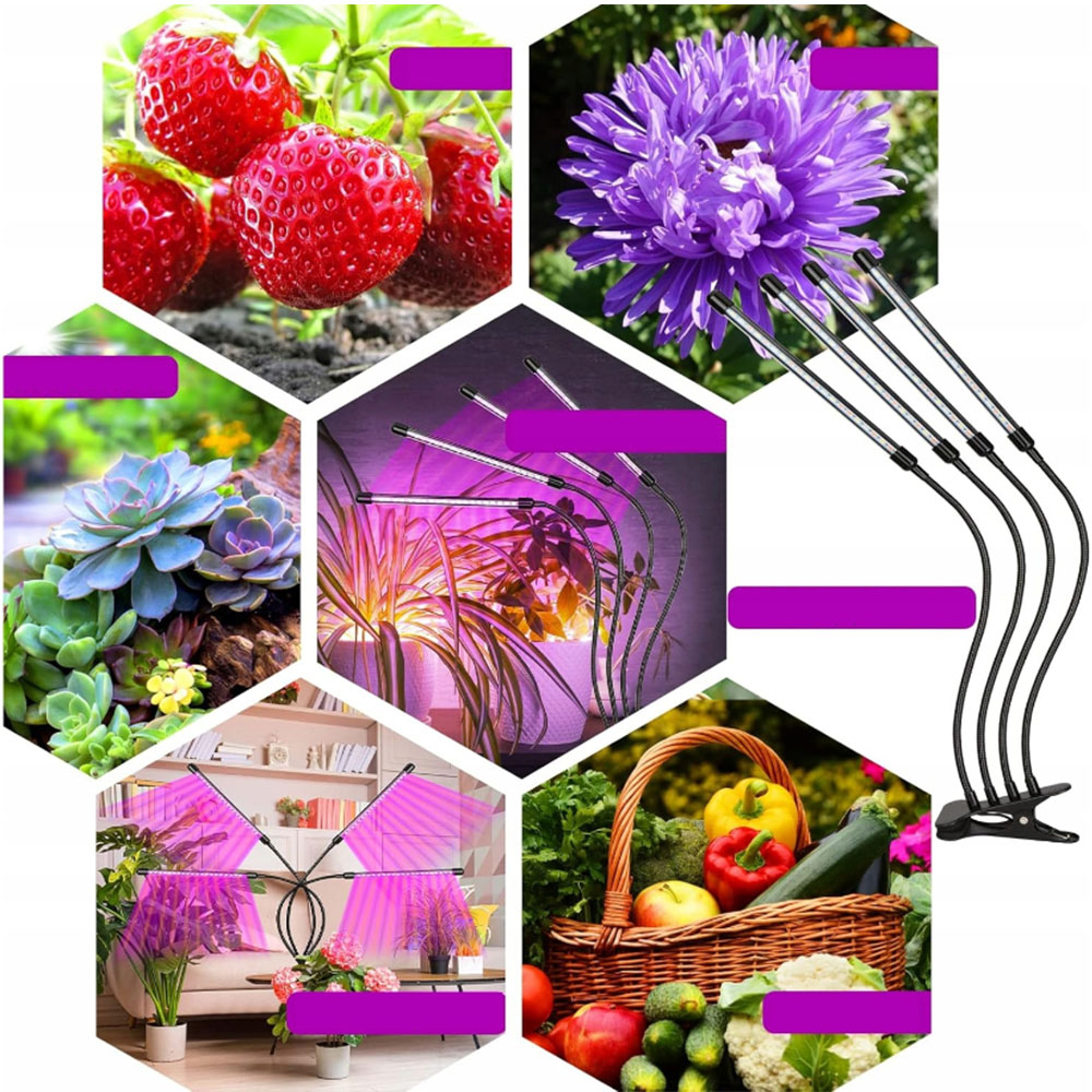 має 4 гусячу шию 360 °, яку можна легко адаптувати до будь -якого кута між рослинним світлом і рослинами, щоб задовольнити потребу в рослинах росту.