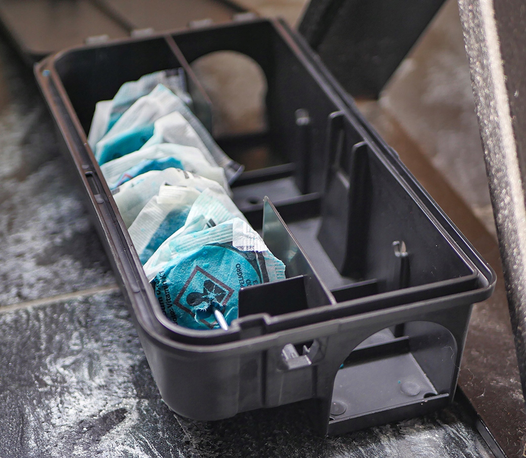 Сильна миша та щури використовуються для моніторингу та хімічної усунення миші та щурів за допомогою відповідних родентицидів. Він виготовлений з міцного пластику з розмірами 23 x 12,8 x 7,5 см і має ергономічну форму. Всередині станції дератизації можна розмістити щурами та мишами у вигляді пасти, гранул або кубів. Для здоров’я несанкціонованих осіб