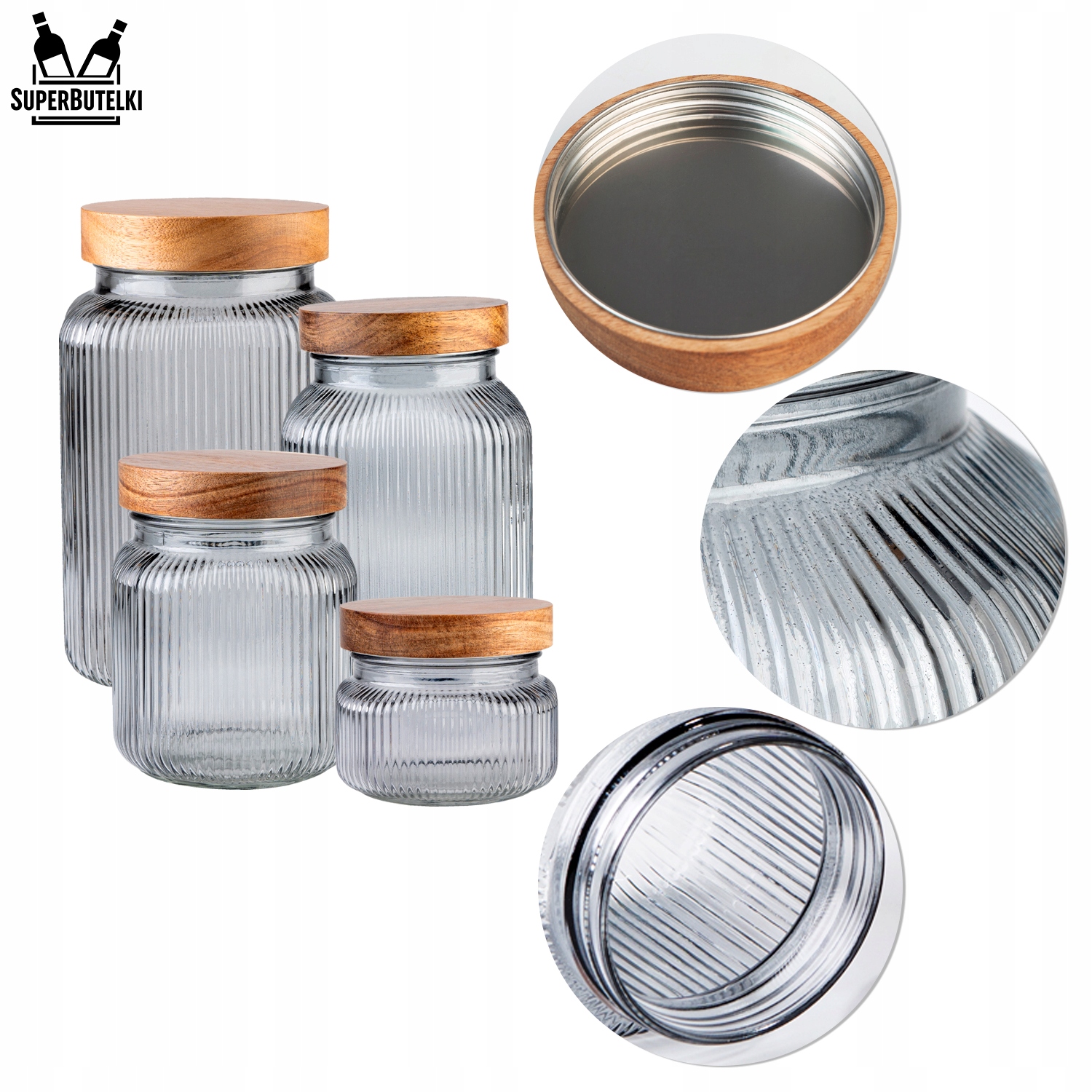 ✨ 🫙 Набір із 4 шматочків контейнерів для скляних банок з дерев’яною шапкою 0,5 л + 1L + 2L + 3L сірий 🫙