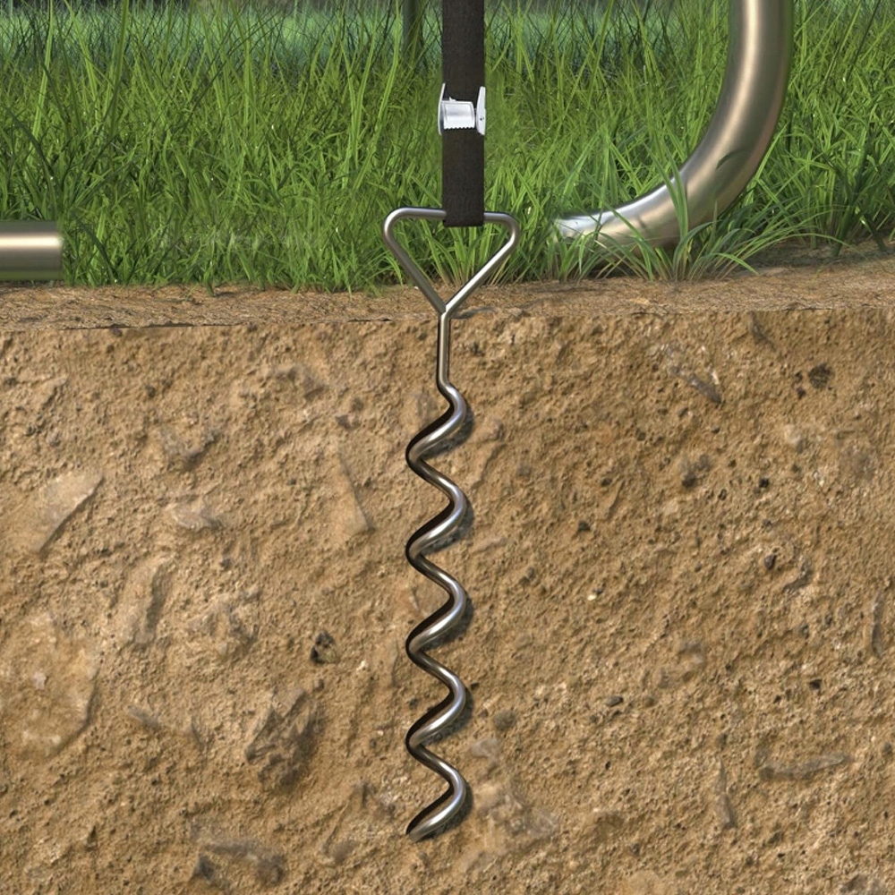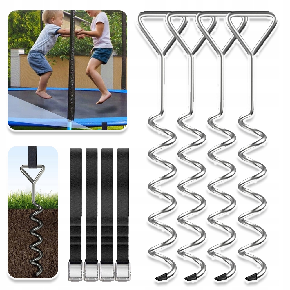 Цей набір для прикріплення якоря до батуту ідеально підходить не лише для кріплення батутів, але й для наметів, гойдалків, e-Z вгору, баскетбольних систем, дерев, захисних решітків та всіх видів обладнання на свіжому повітрі, як прив’язки для наметів, якоря для раків