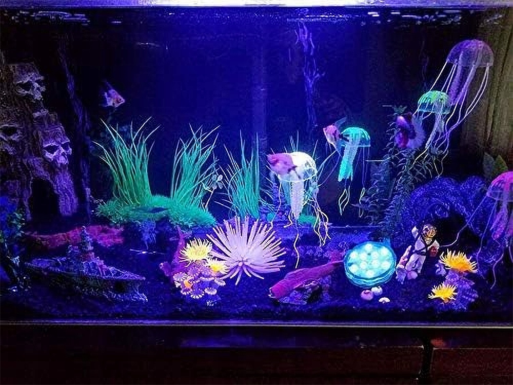 віддалений контроль: контроль під водою. Відстань управління повітря може досягати 30 м і 5 м у воді. Оснащений 16 кольорами, 3 режимами зсуву, регульованою яскравістю та перемикачем часу. 4