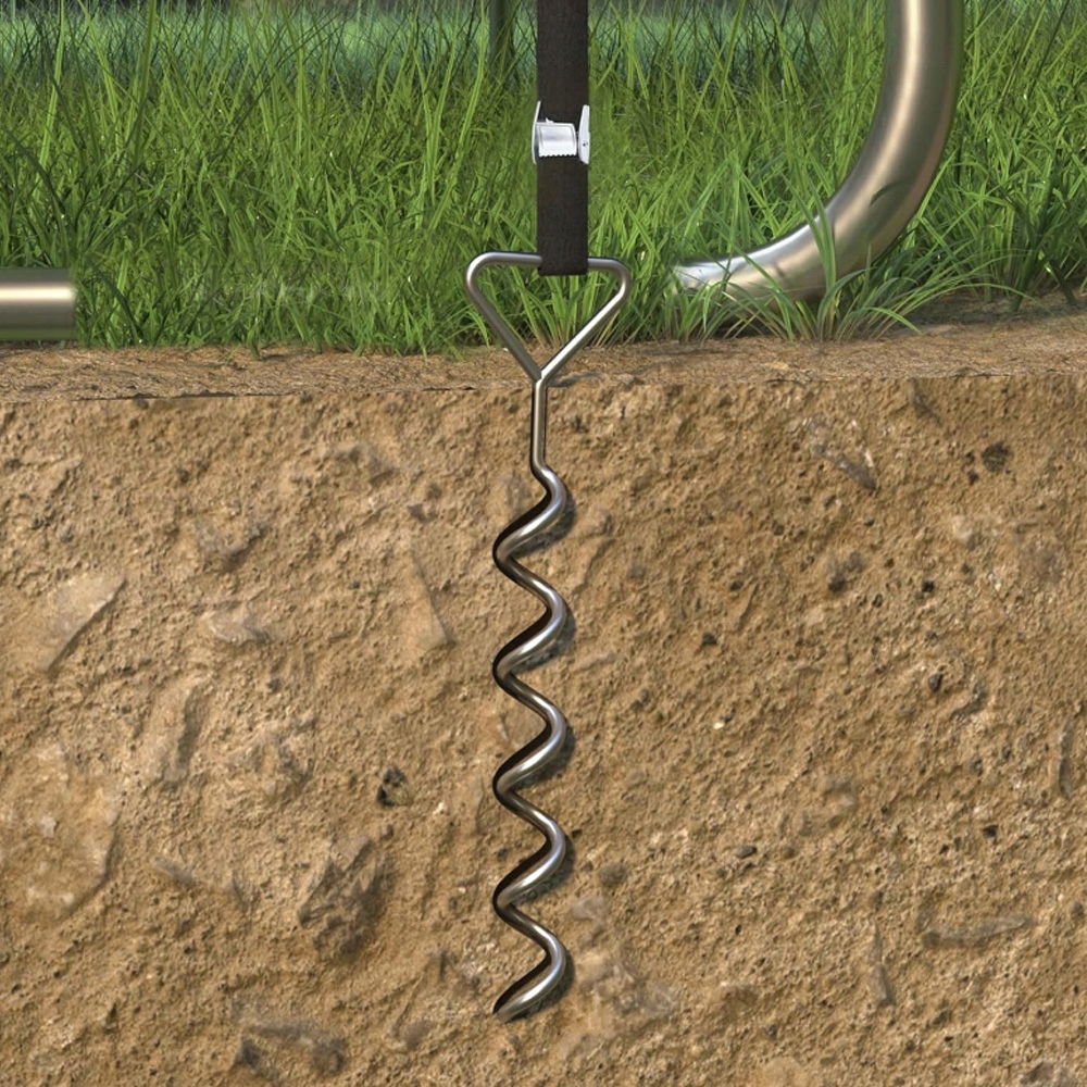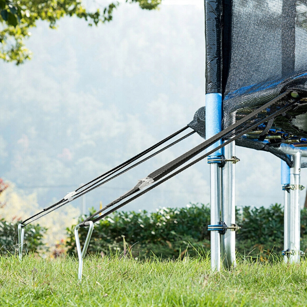 Захистіть батут під час шторму/вітряних умов, сталеві смітники до гвинта батутів глибоко в землю, щоб міцно прикріпити батон до землі. Набір батутів, придатних для всіх круглих або прямокутних батутів.