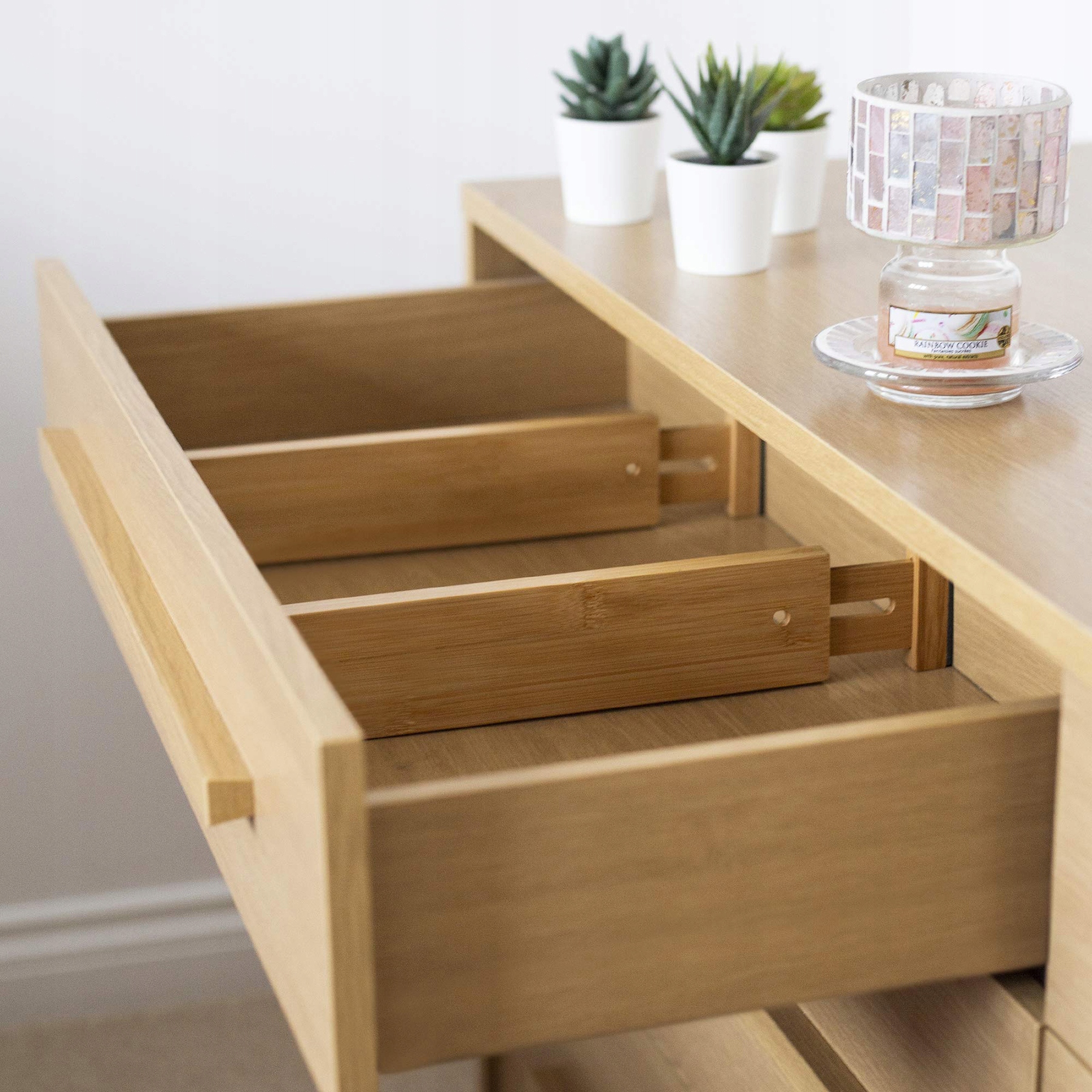 Високоякісна конструкція та матеріали: Система відсіку оснащена гумовими прокладками на обох кінцях для захисту ящиків та самого організатора. Усі відсіки виготовлені з високоякісного бамбука (клас А) і характеризуються міцною і красивою обробкою, що нагадує органічний бамбуковий мох.