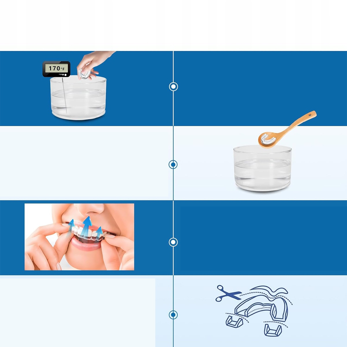 Захисник виготовлений із безпечного та м'якого матеріалу, який можна легко утворити в гарячій воді, адаптуючи його до форми укусу. Незалежно від того, ви дитина, підліток чи дорослий, якщо ви шліфете зуби і хочете захистити їх, наші захисники для вас. Допомагає запобігти всім типам болю, які можуть бути спричинені гнахами зубами.