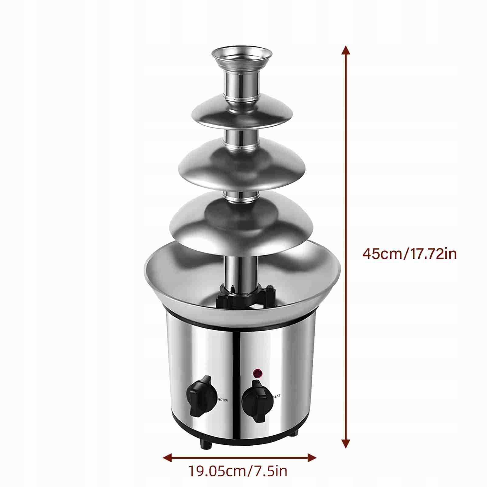 - 1 Завдяки елегантному дизайну та потужному двигуні він може легко розплавити та каскат різні солодкі частування, такі як шоколад, сир і навіть фондю, створюючи чудовий центральний елемент, який вразить ваших гостей.