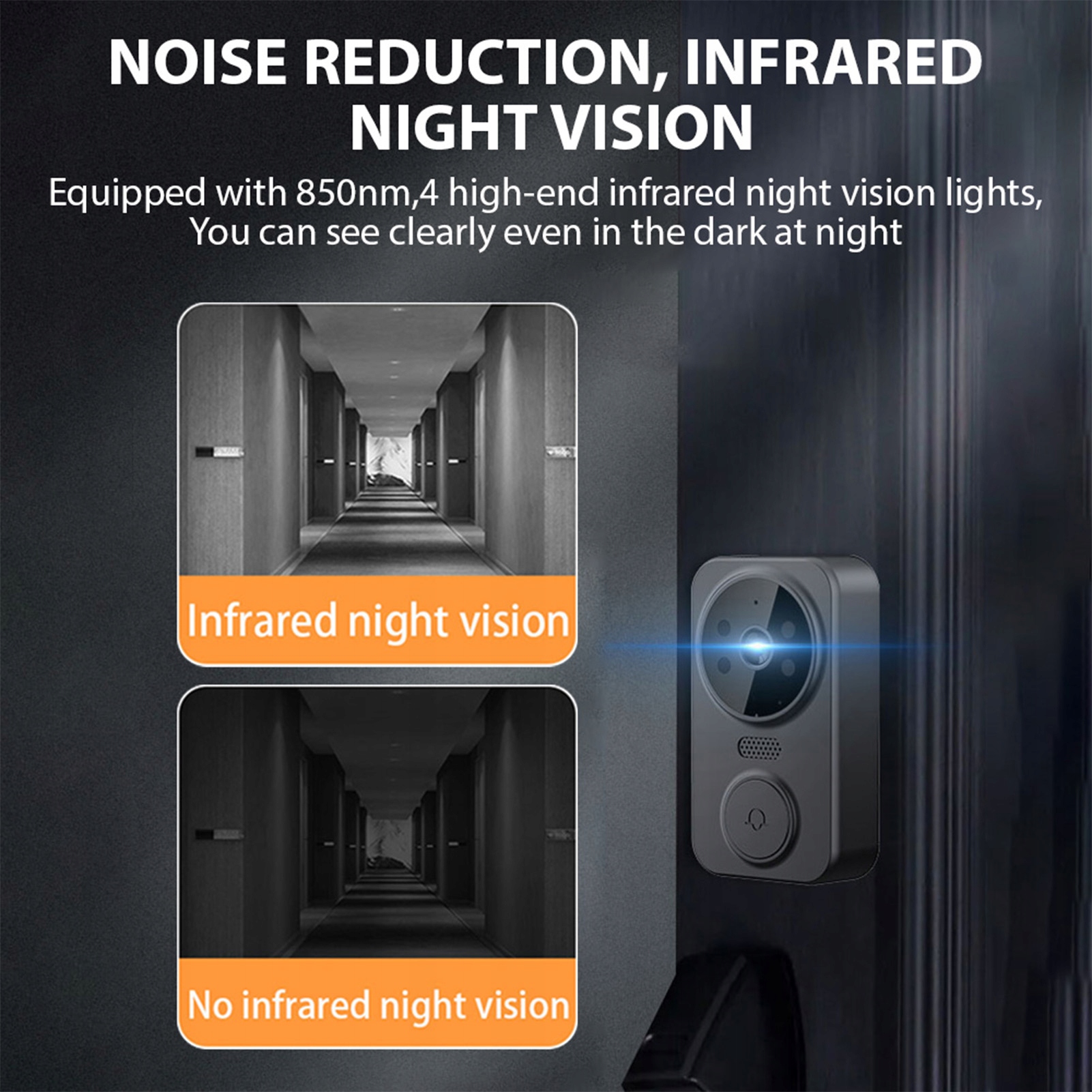 - 【Нічне бачення та широкий кут огляду】: завдяки 4 передовим інфрачервоним лампам нічного бачення 850 нм дверний дзвінок інтелектуально оптимізує режим нічного бачення, дозволяючи вам чітко бачити навіть у темряві. Забезпечує кут огляду 70 градусів, що забезпечує всебічний огляд у вас під рукою.