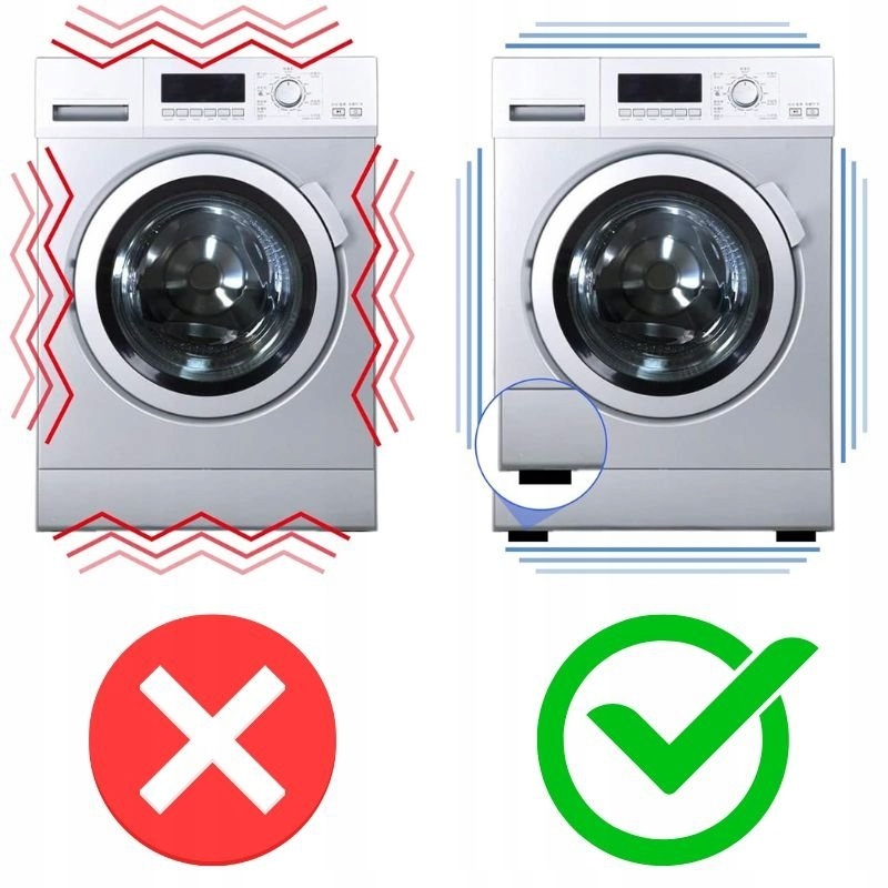 Антивібраційні накладки зменшує вібрацію та поглинає удари, створювані пральними машинами та іншими пристроями. Завдяки цьому пристрої працюють тихіше, що забезпечує більший комфорт використання.