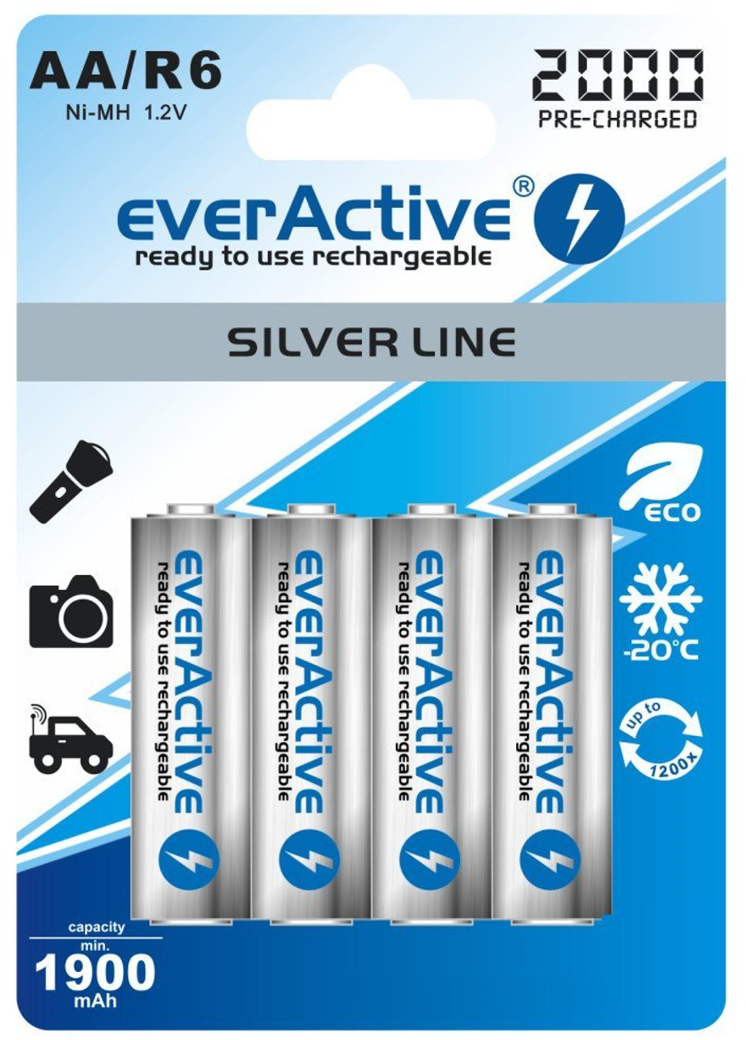 - 4 батареї everActive R6/AA 2000mAh