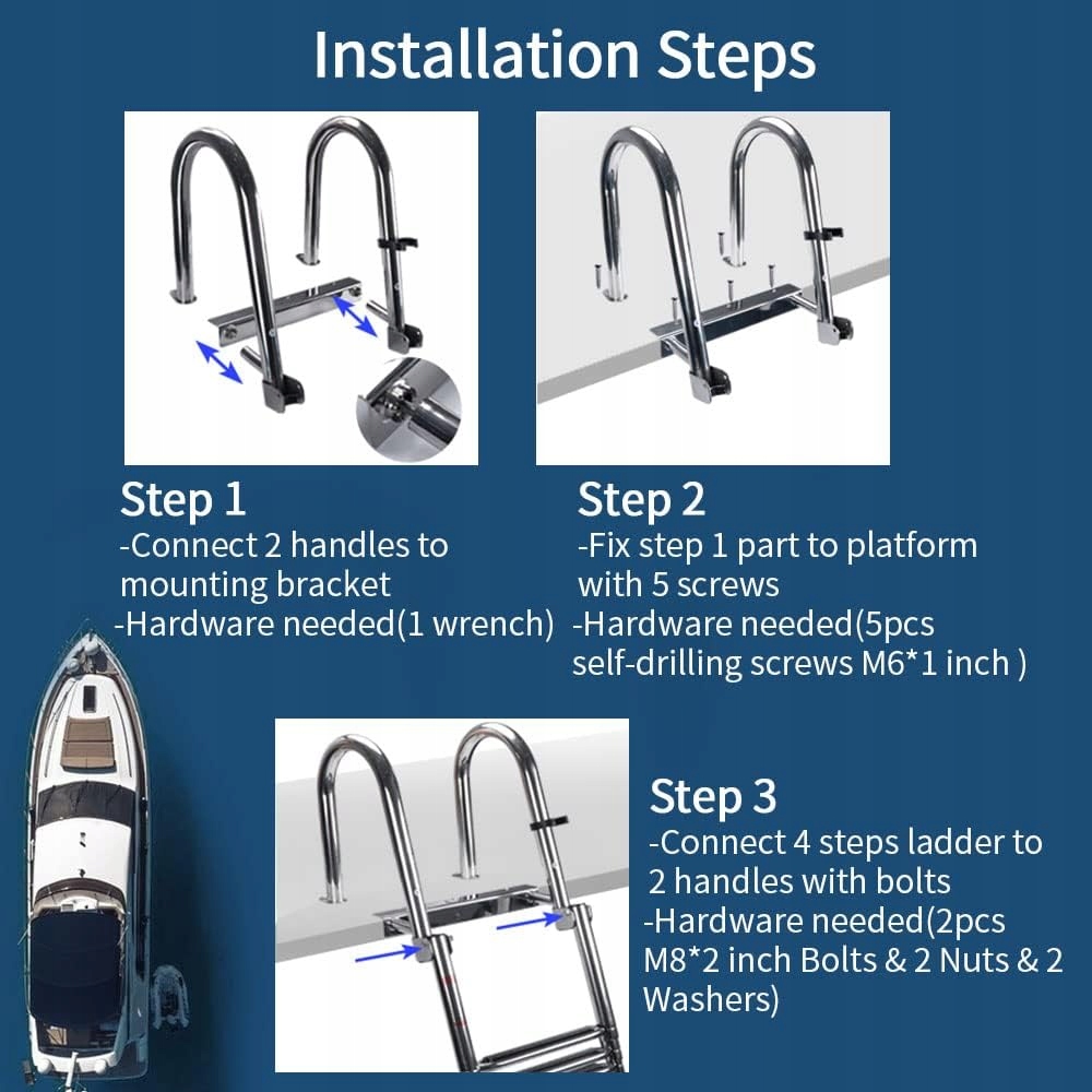 ✔ рівні non -slip - чорний рівень гуми внизу полегшує сідання та забезпечує максимальну адгезію . Кожен ступінь покрита non -slip покриттям , що збільшує безпеку . Додаткові липучки зберігають драбину в складному положенні. > до łódź та яхт, виготовлених з нержавіючої сталі з електрополетом .