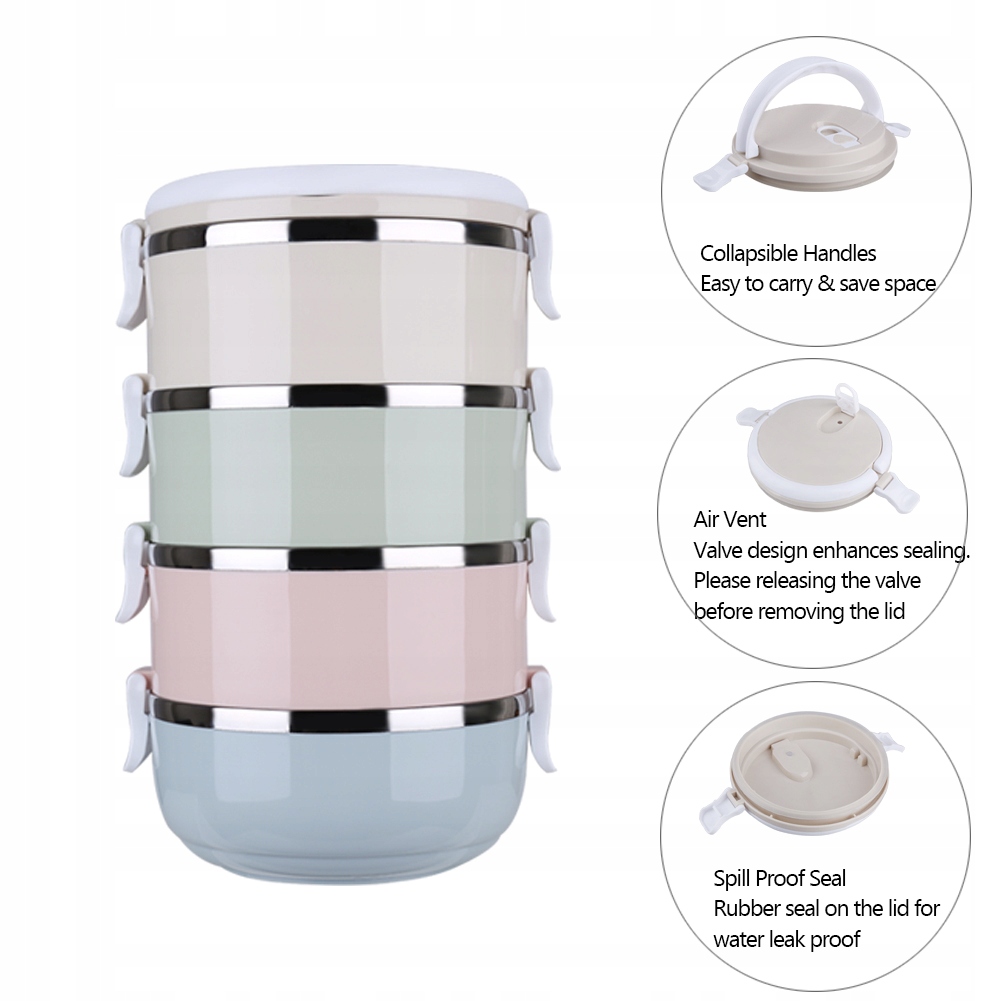 компактна, 4-рівнева конструкція, ви можете зберігати в ній більше їжі. Спеціально розроблений для вас на ходу. Накрийте гумовою прокладкою для транспортування води, щільно.